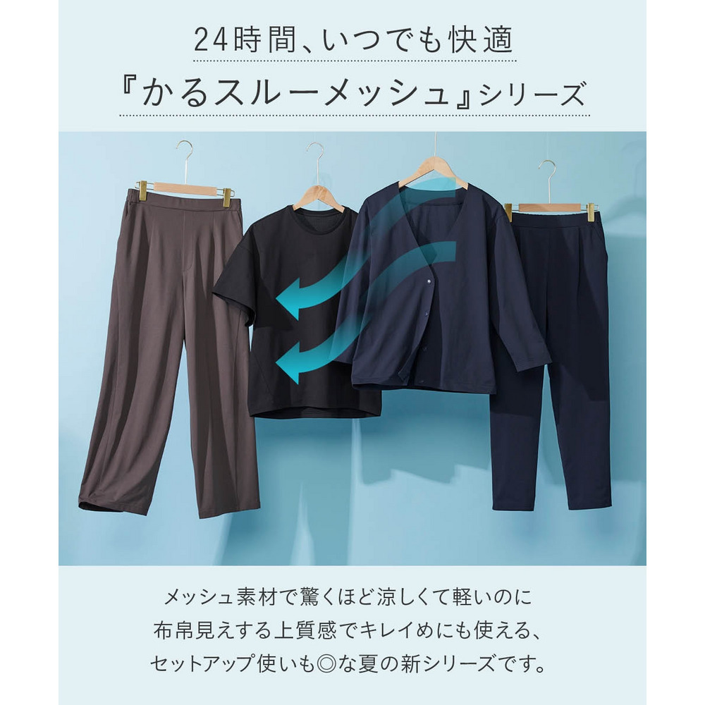 家でも外でもお出かけ時もずっと快適!軽くて涼しくさらさら!風が通るので涼しく蒸れません!伸縮性があるので1日中、着てても楽々なのにきちんと見えるのでお出かけもOKな便利ボトム