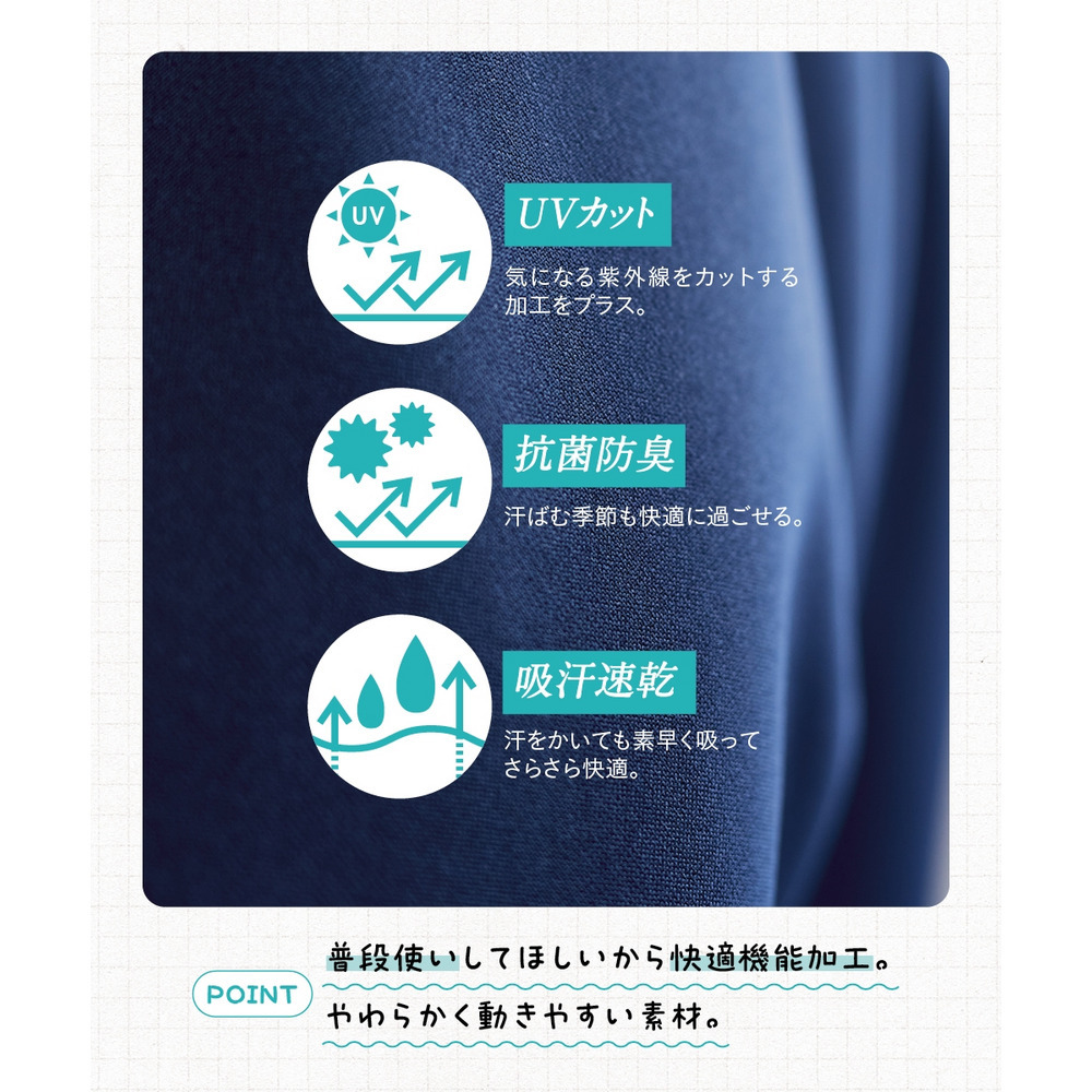 抗菌防臭・吸汗速乾・UVカット機能付きで、