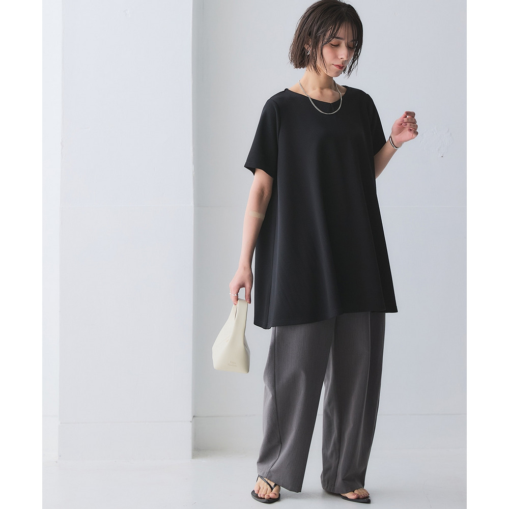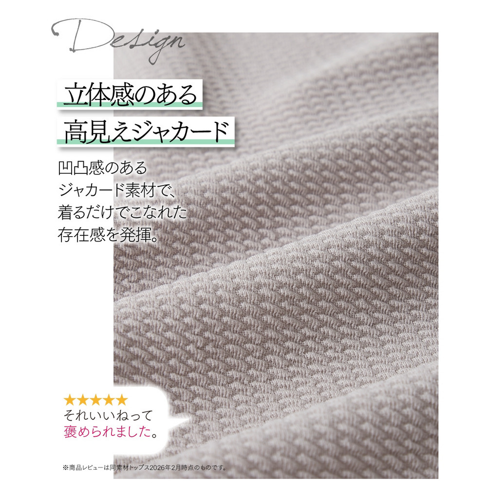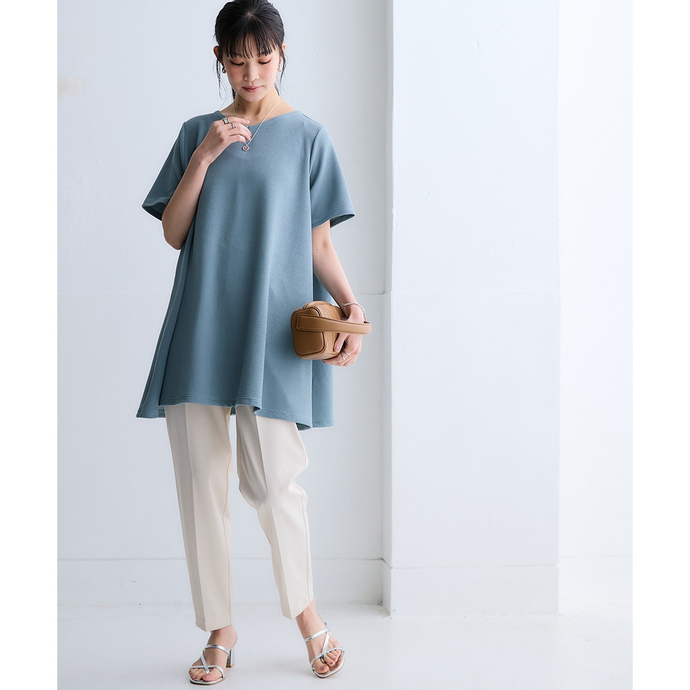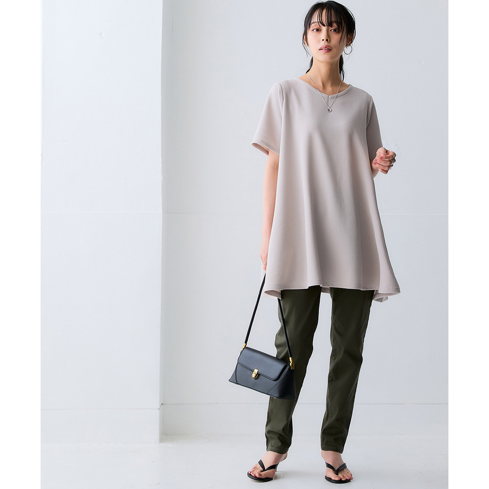 凹凸感のある素材で体型を拾いにくく、自然に美しいシルエット。