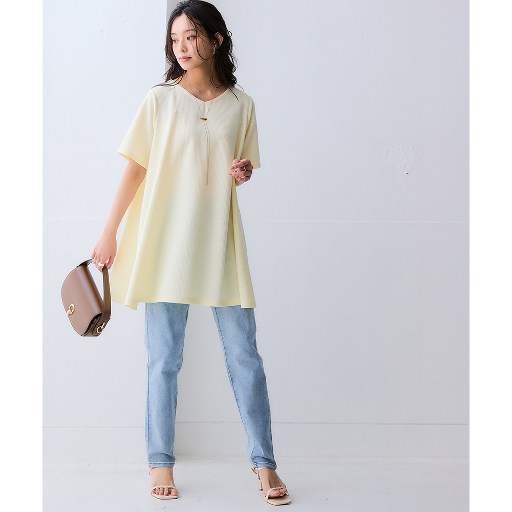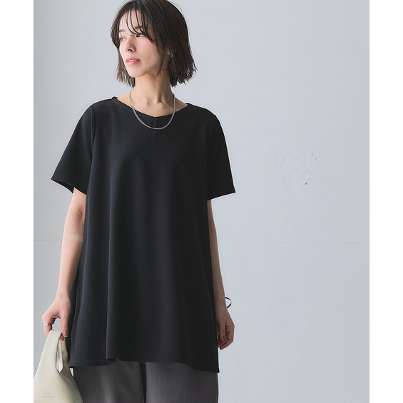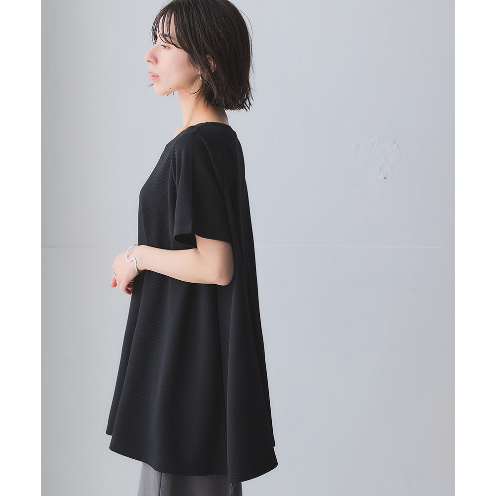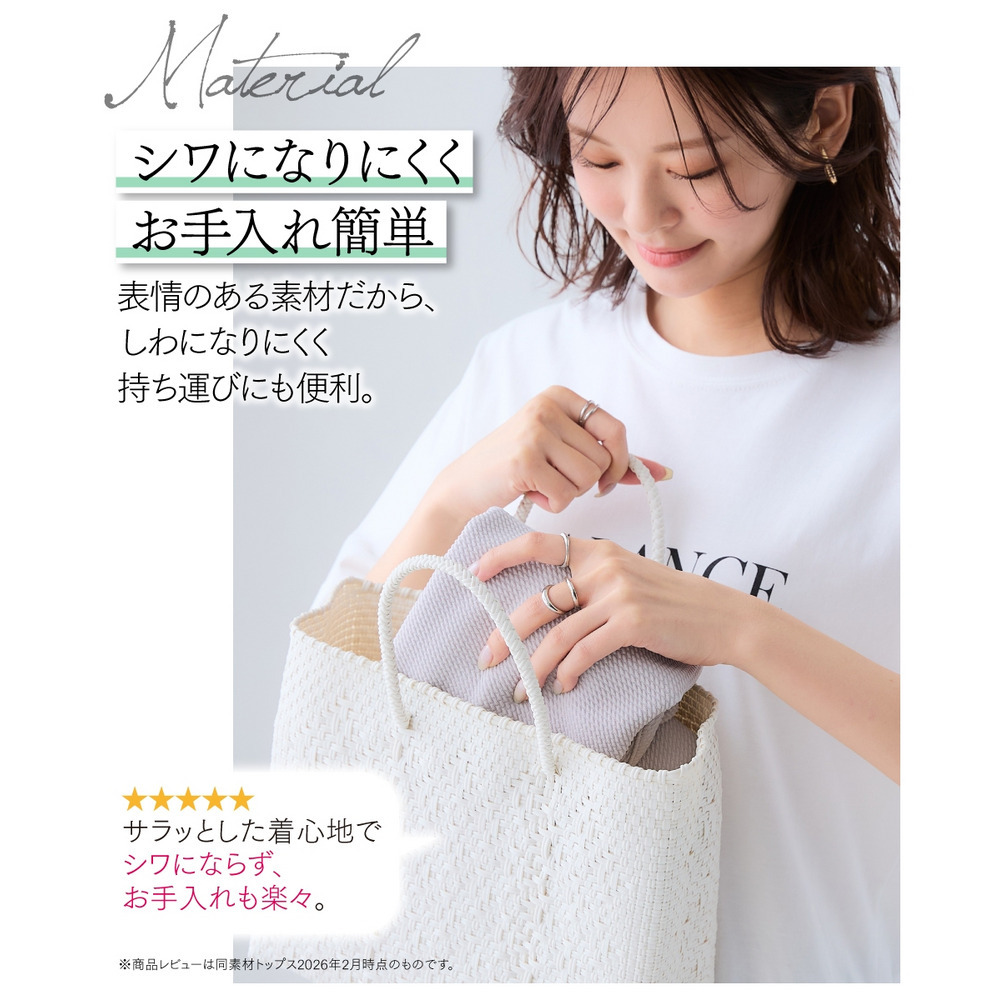 凹凸感のある素材で体型を拾いにくく、自然に美しいシルエット。