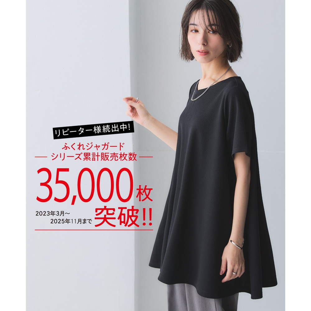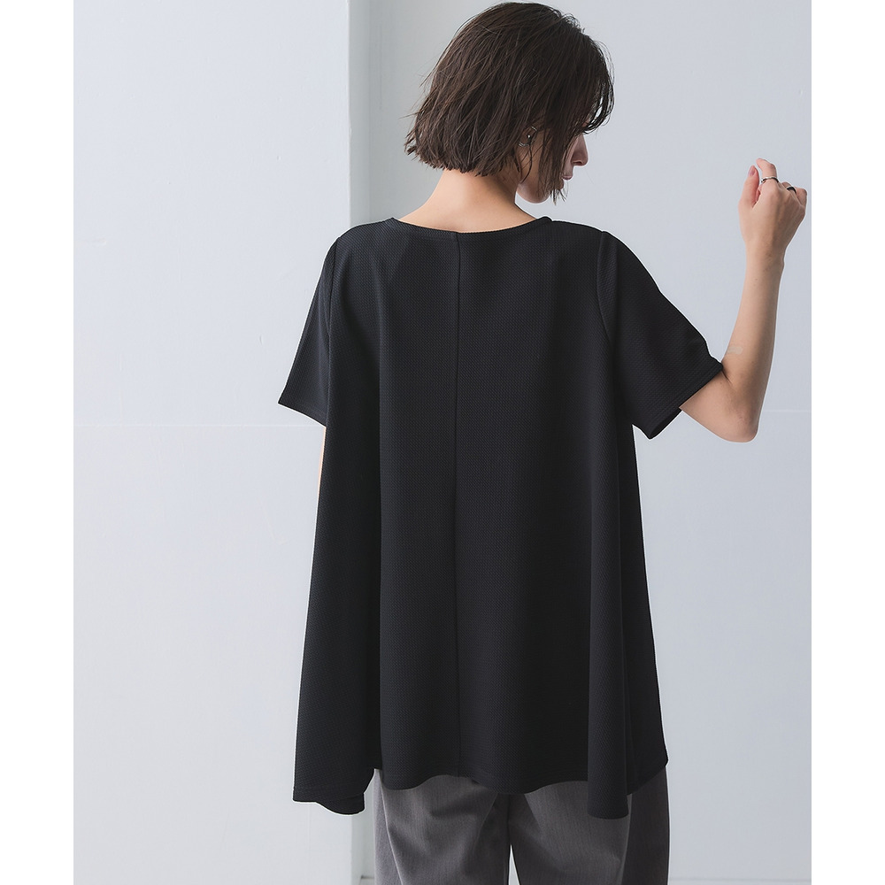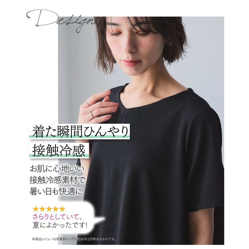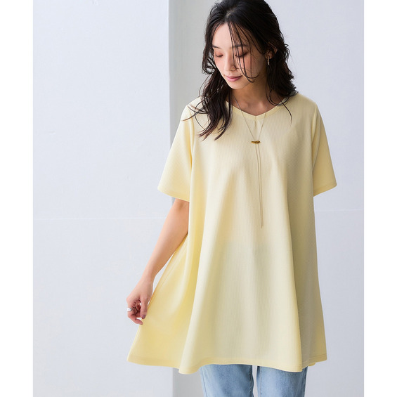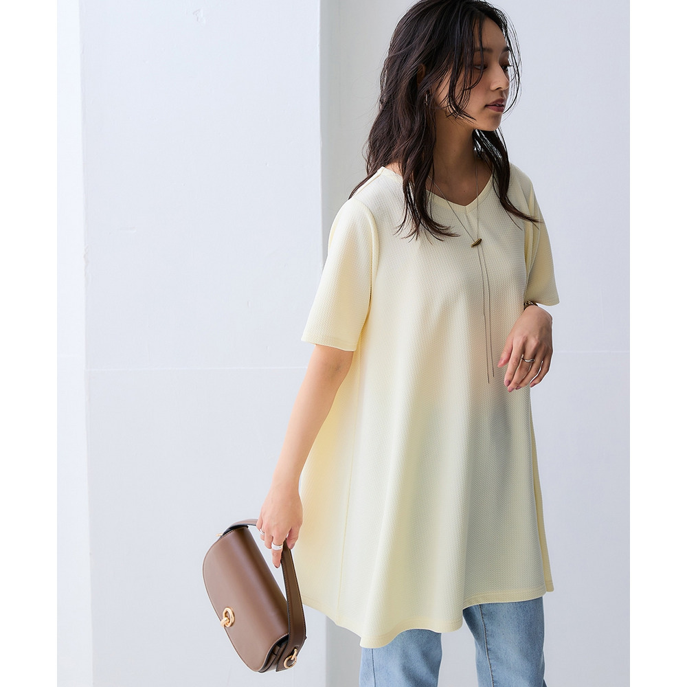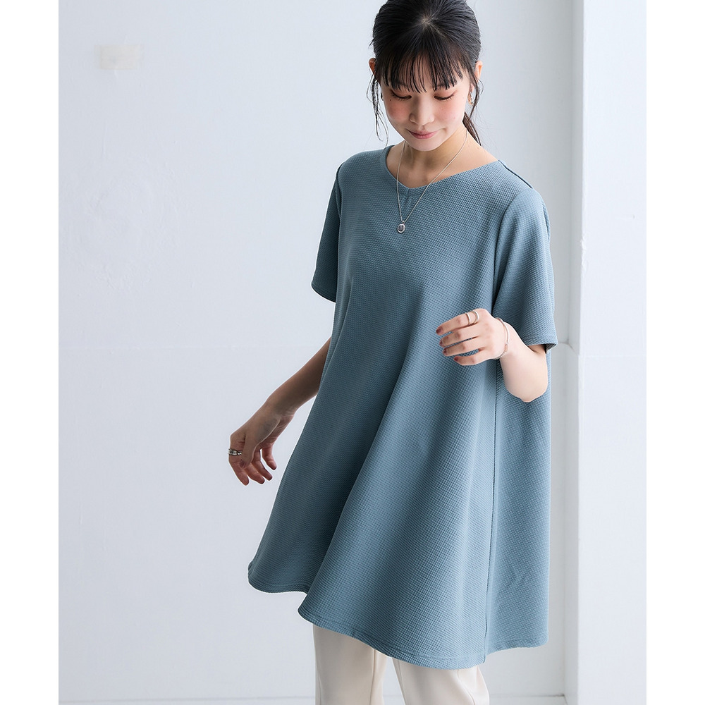ふくれジャガードカットソー5分袖Vネックフレアチュニック(イージーケア・UVカット・接触冷感) 大きいサイズ