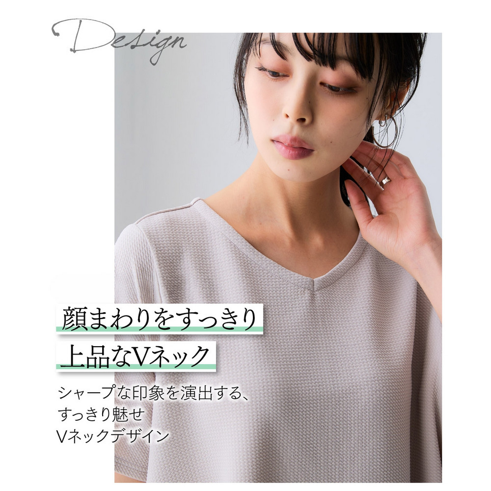 Vネックで顔まわりをすっきり演出。
