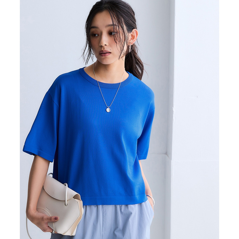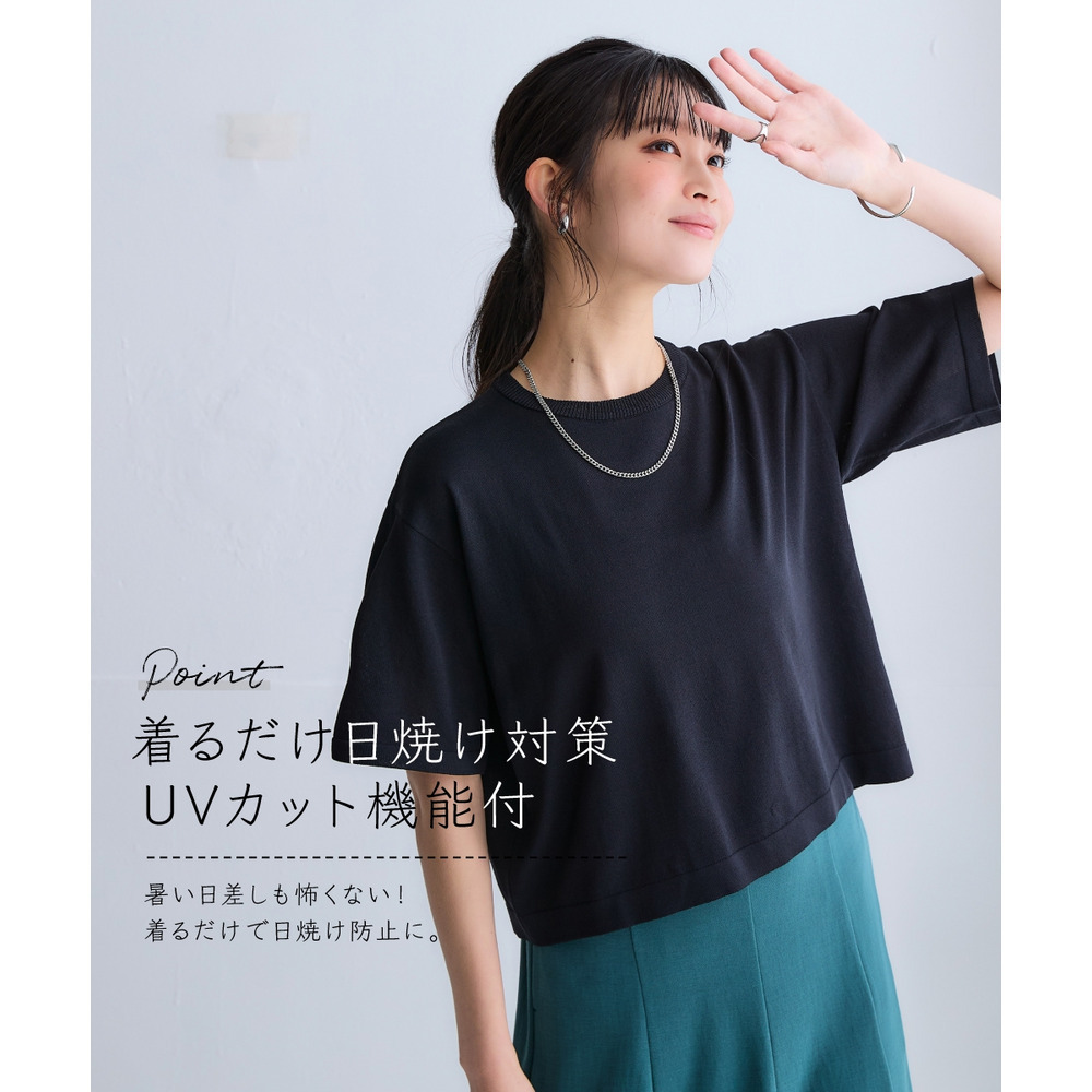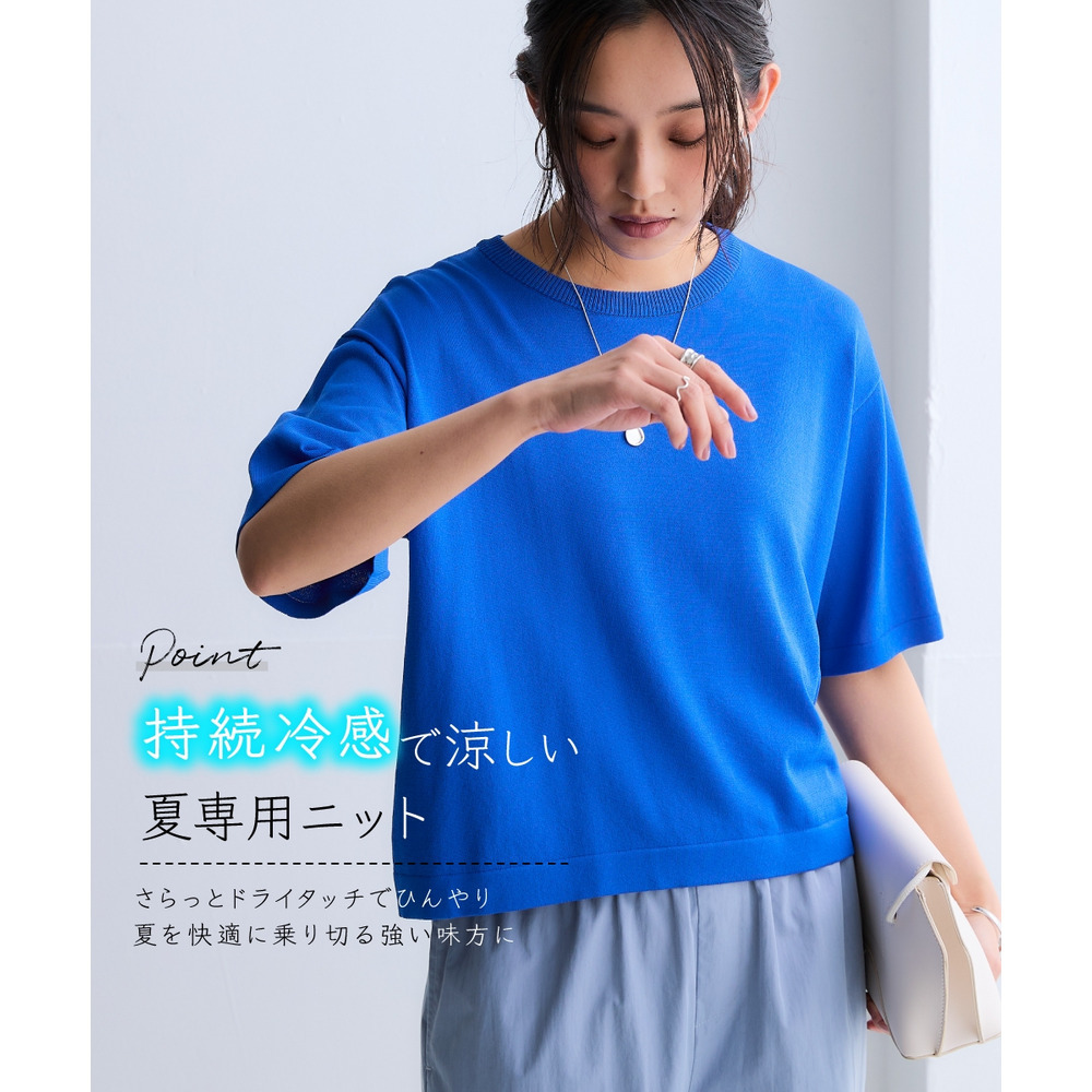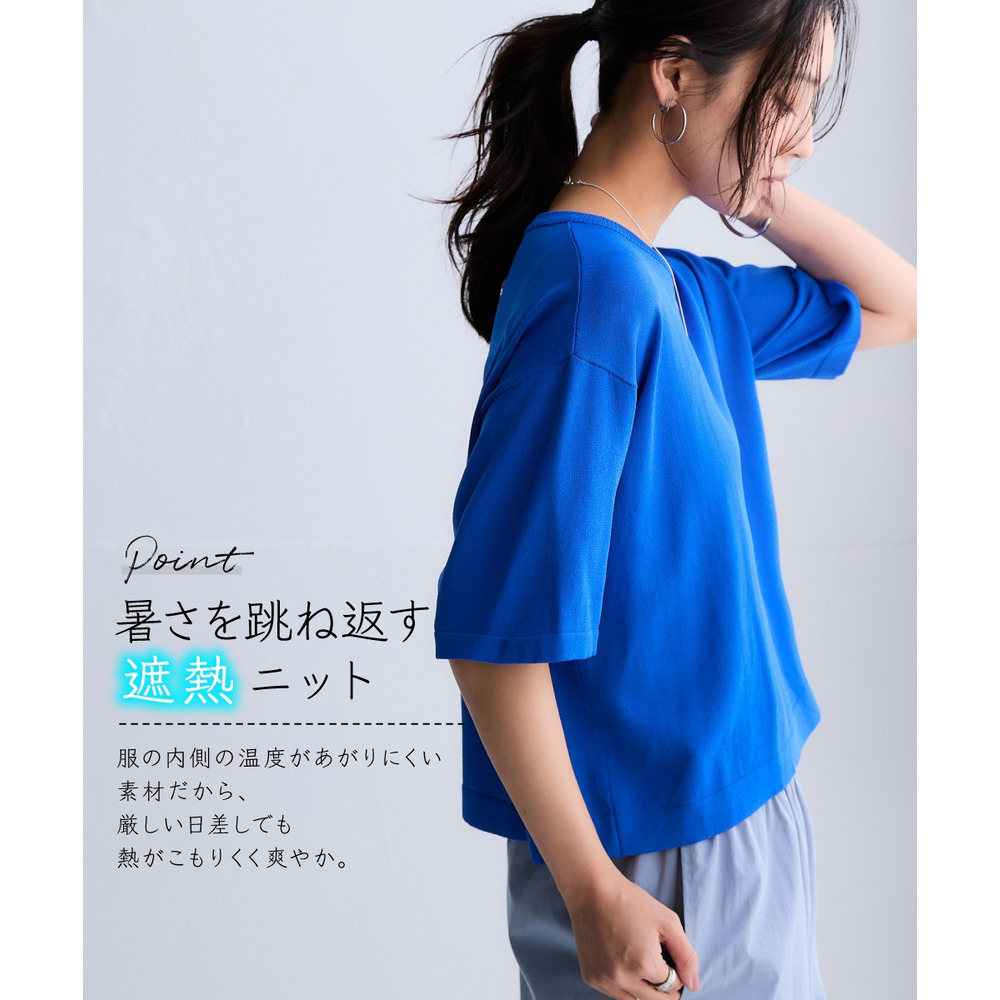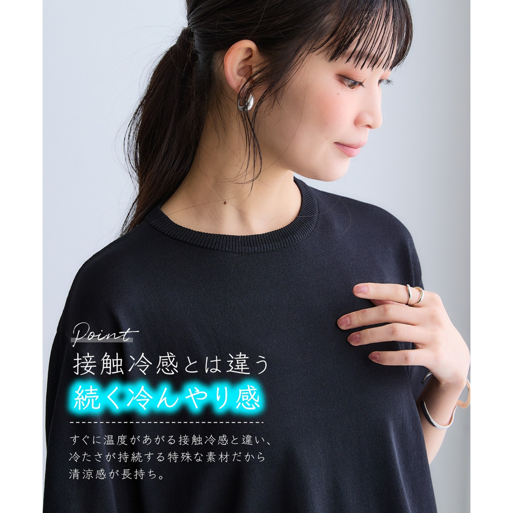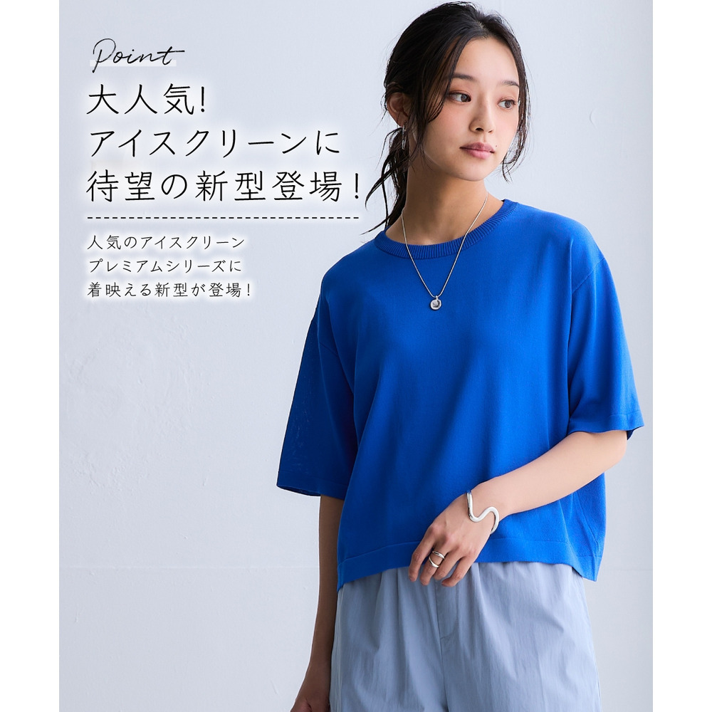 【アイスクリーンプレミアム】クロップド丈5分袖ニット(持続冷感・接触冷感・毛玉になりにくい・UVカット・洗濯機で洗える・遮熱) 大きいサイズ