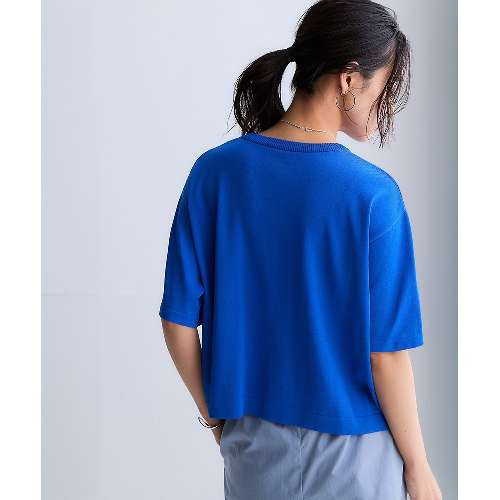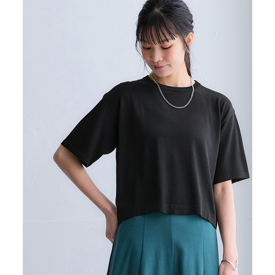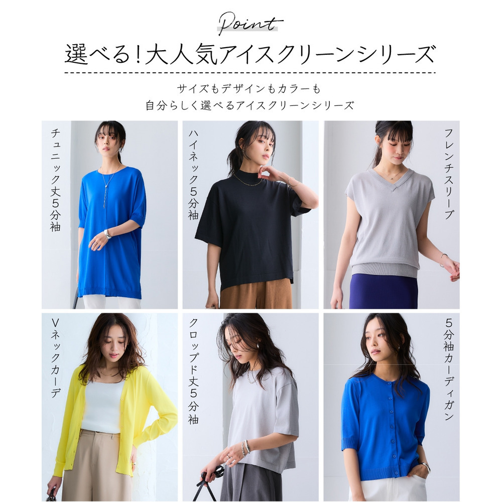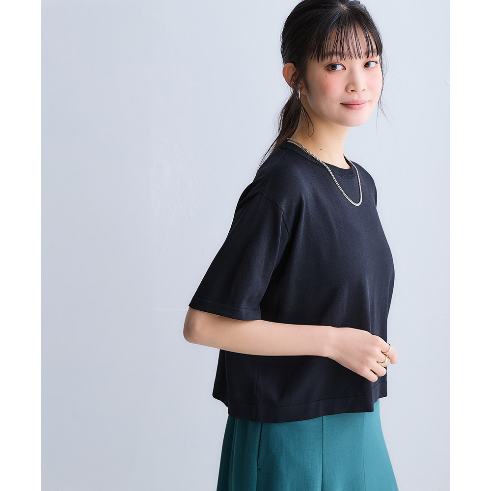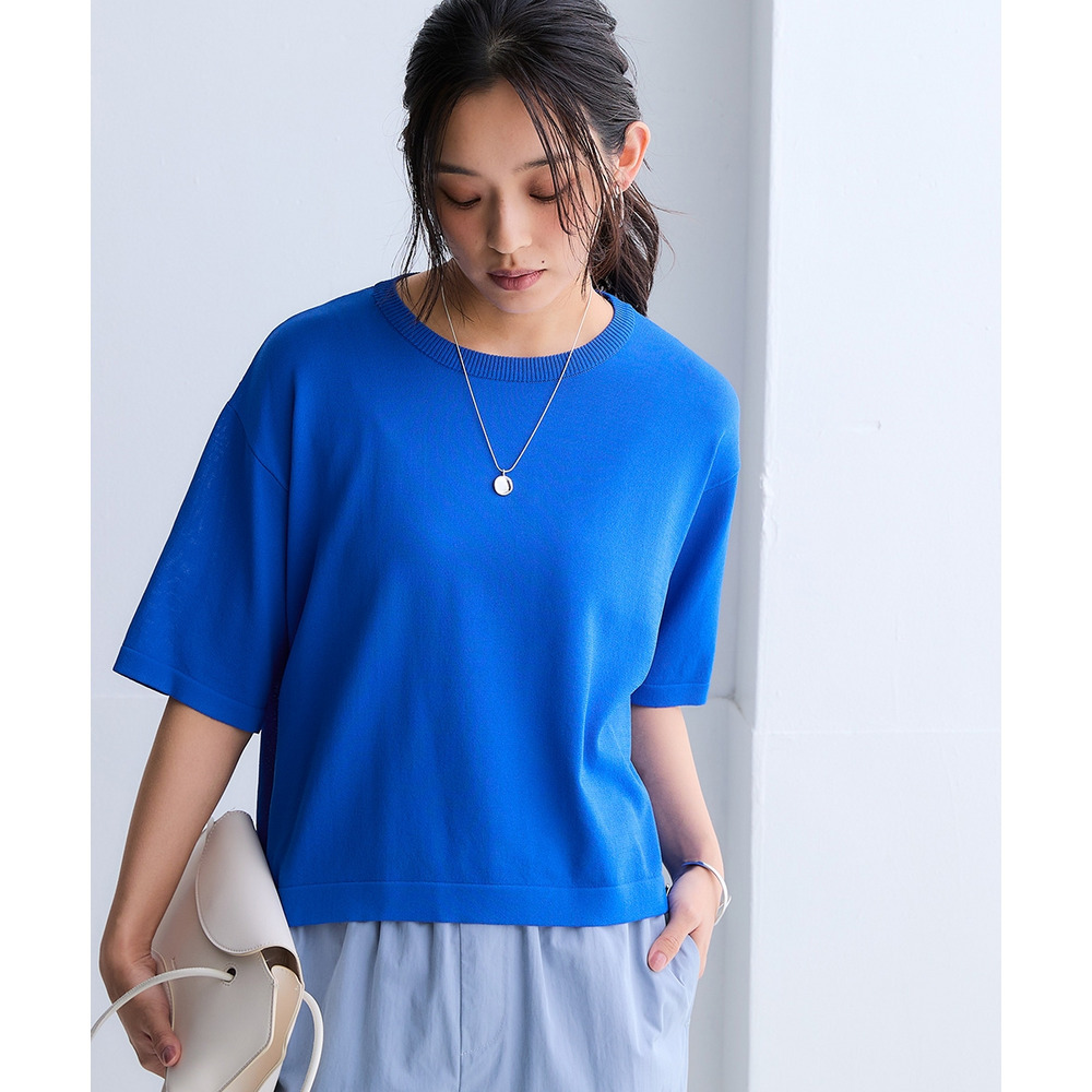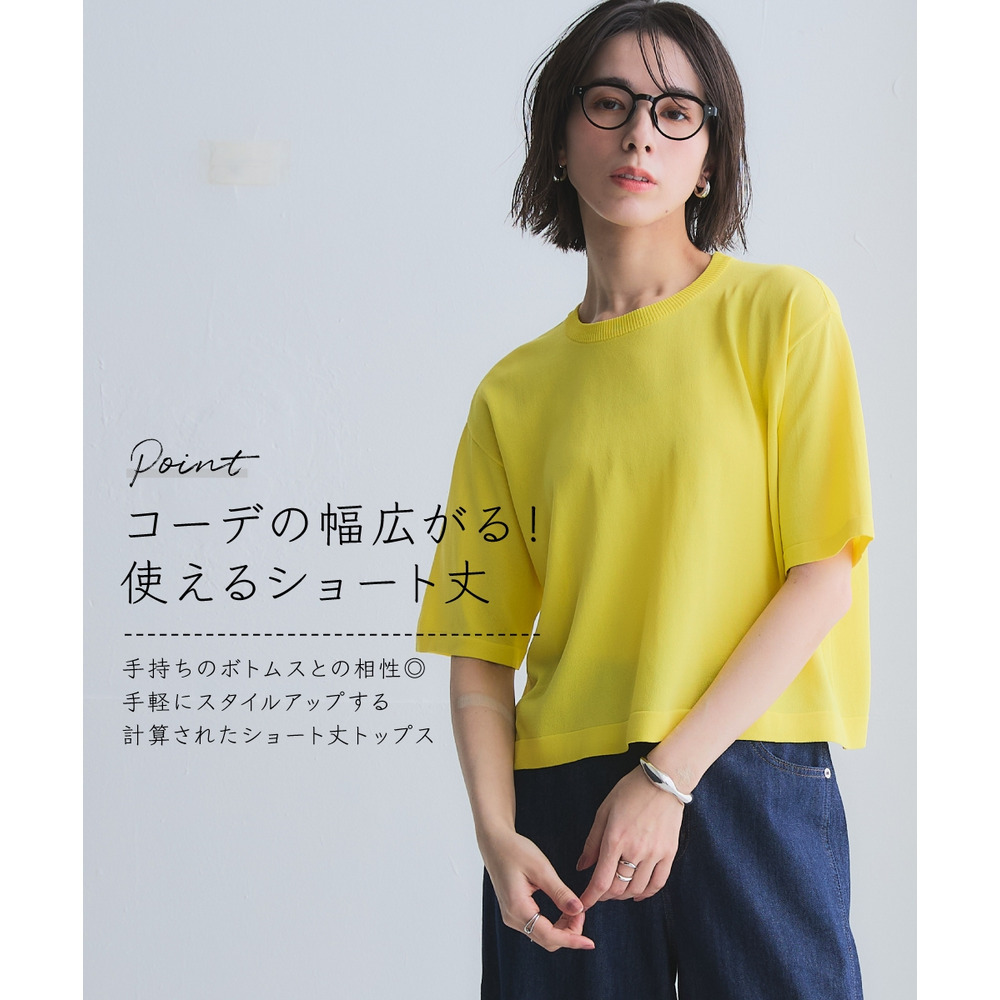 【アイスクリーンプレミアム】クロップド丈5分袖ニット(持続冷感・接触冷感・毛玉になりにくい・UVカット・洗濯機で洗える・遮熱) 大きいサイズ