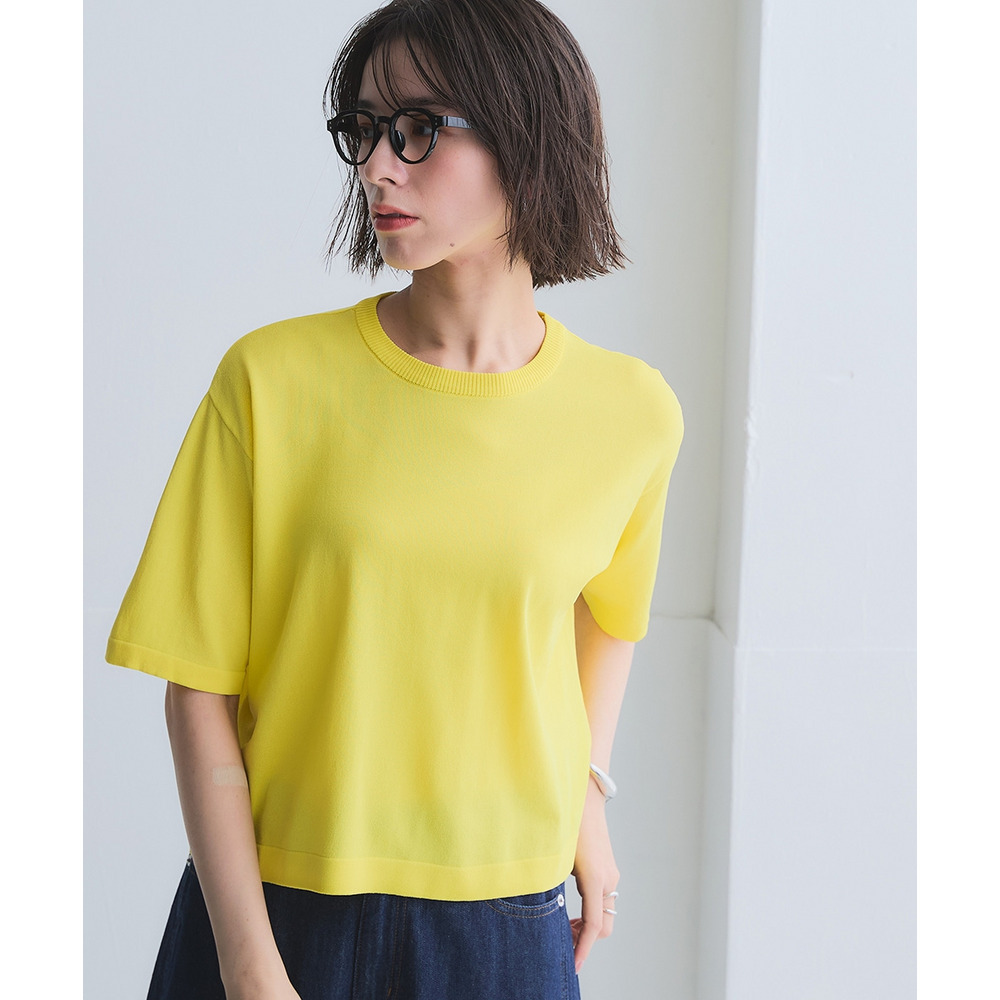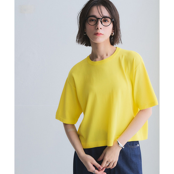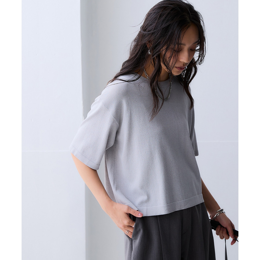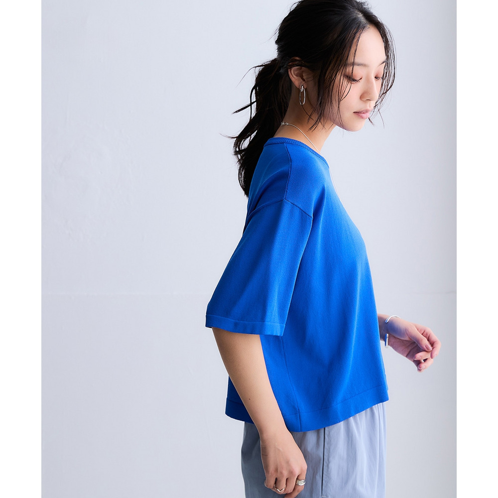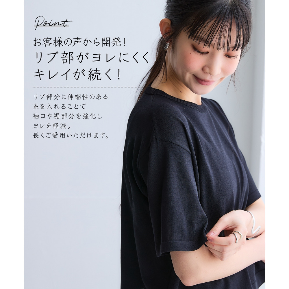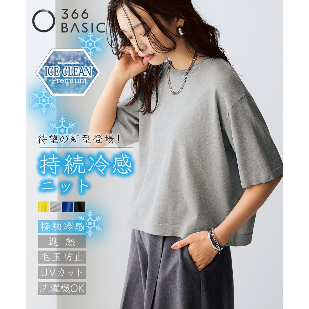 【アイスクリーンプレミアム】クロップド丈5分袖ニット(持続冷感・接触冷感・毛玉になりにくい・UVカット・洗濯機で洗える・遮熱) 大きいサイズ