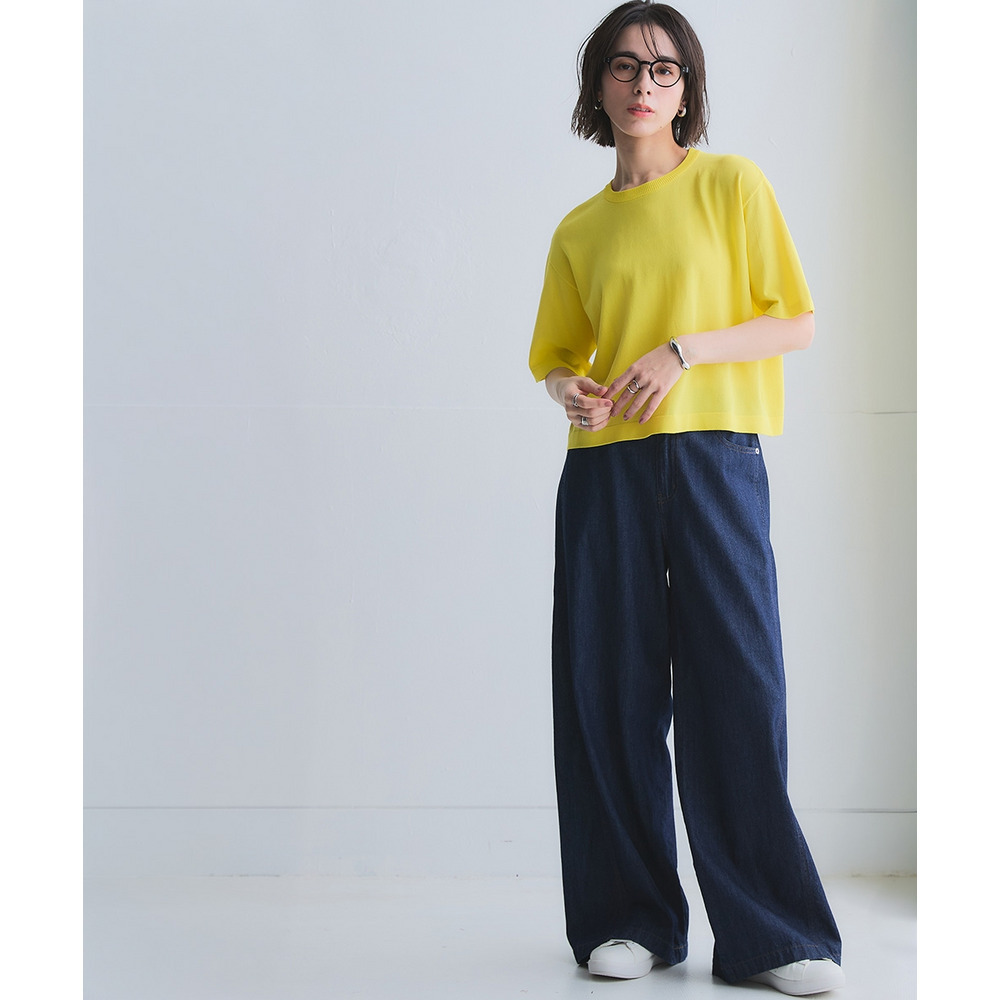 ワイドパンツに1枚で合わせ、足元にサンダルやミュールを添えれば、涼しげで洗練された休日スタイルの完成です。