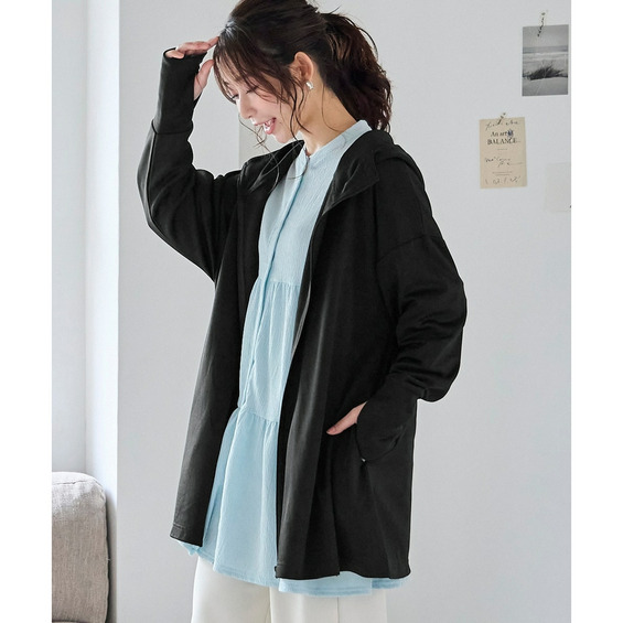 Aライン指穴付きUVパーカー(UVカット・接触冷感)「まとう日陰服」 大きいサイズ