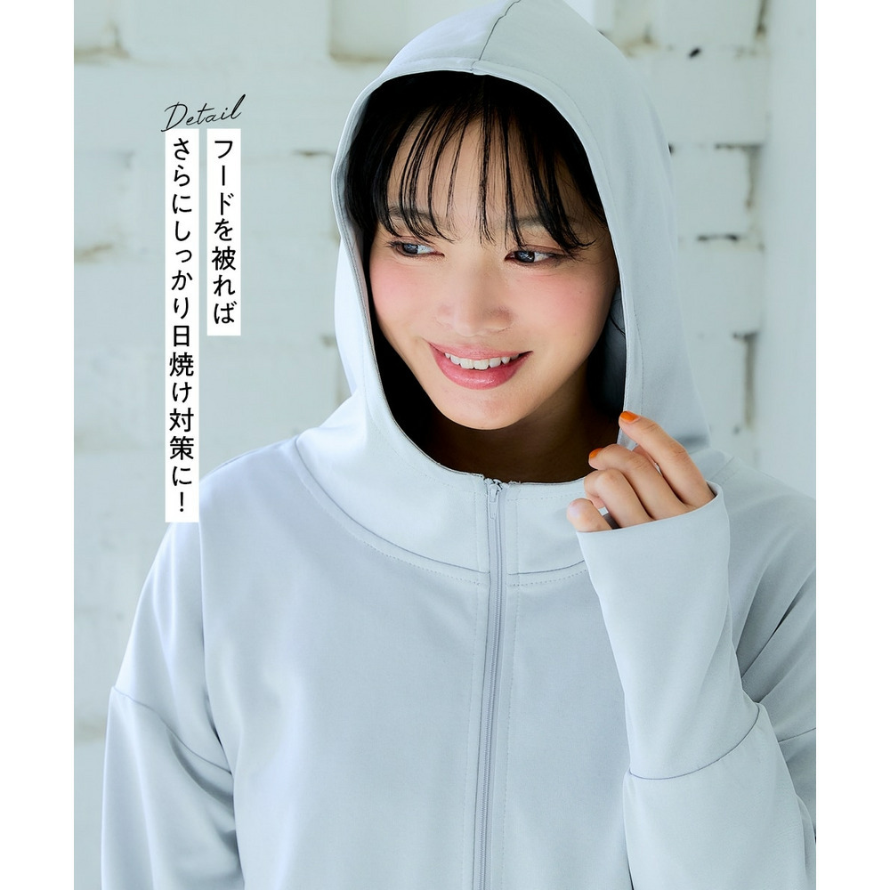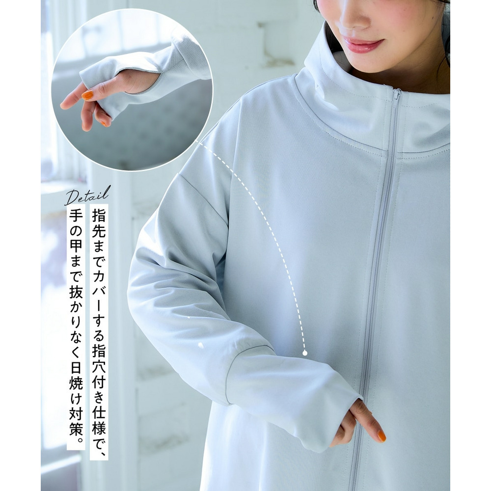 首元までしっかり閉まるファスナー仕様で、デリケートな首筋の紫外線対策も万全です。