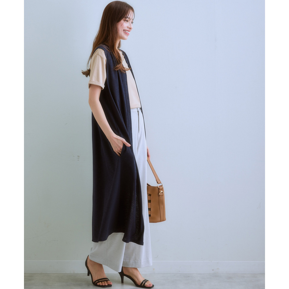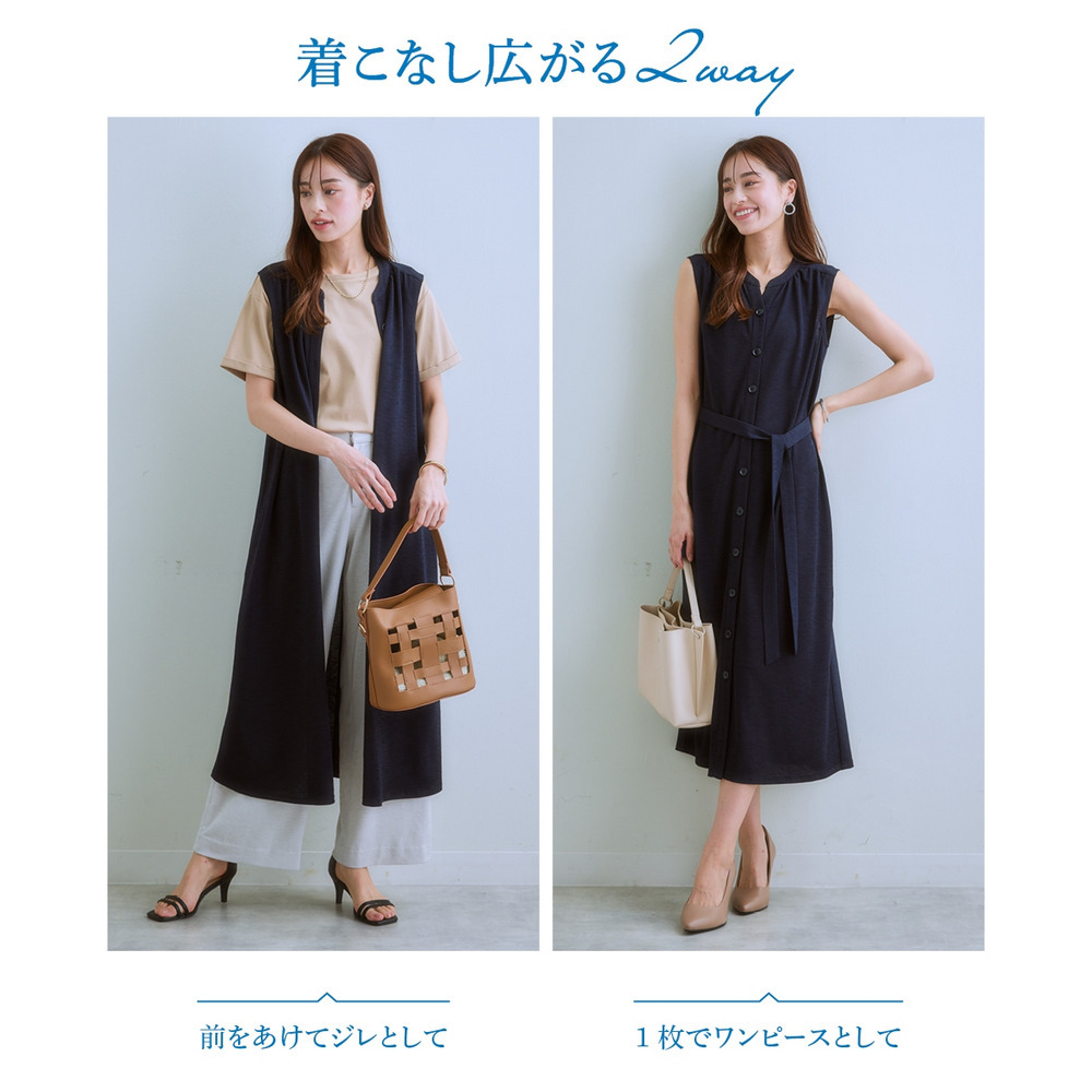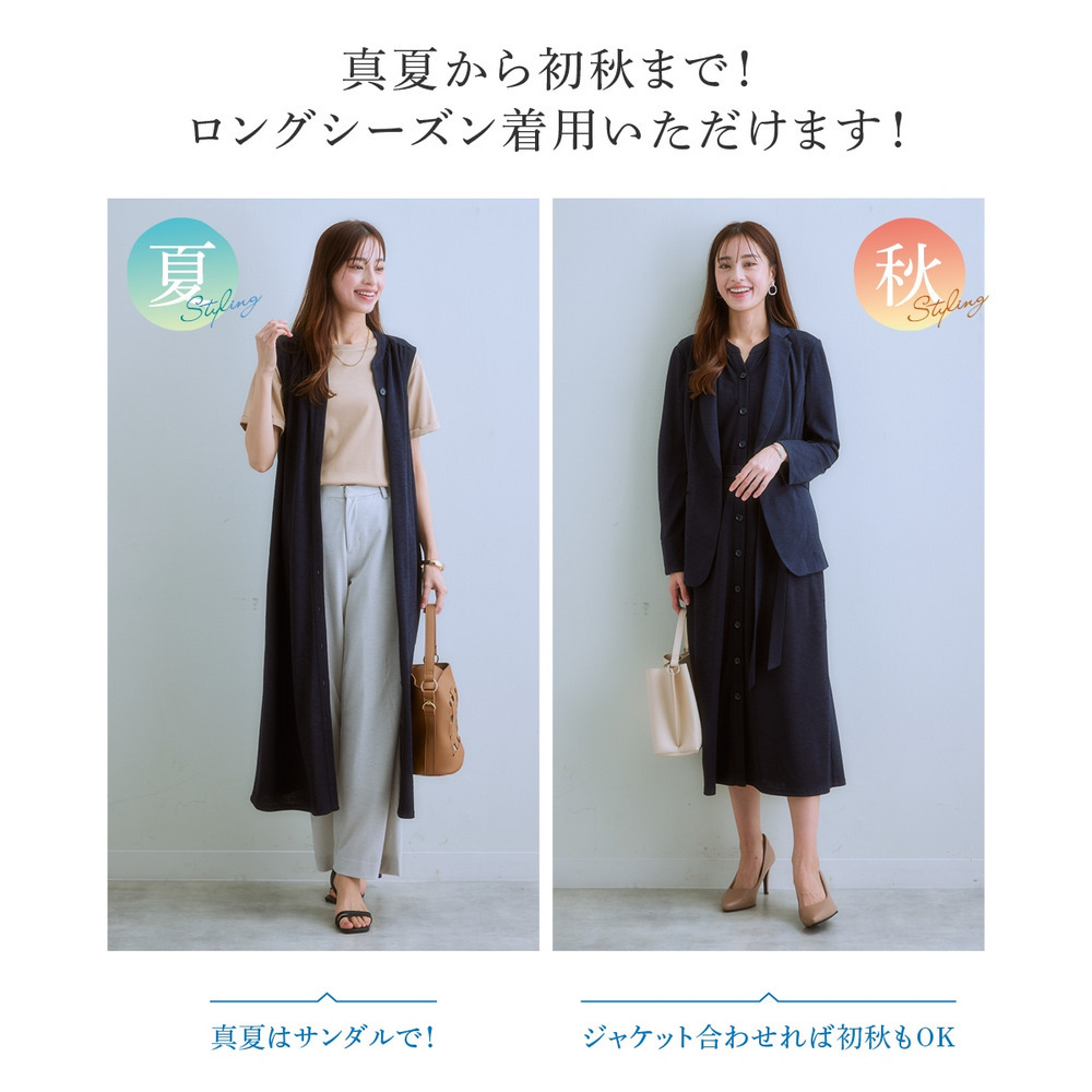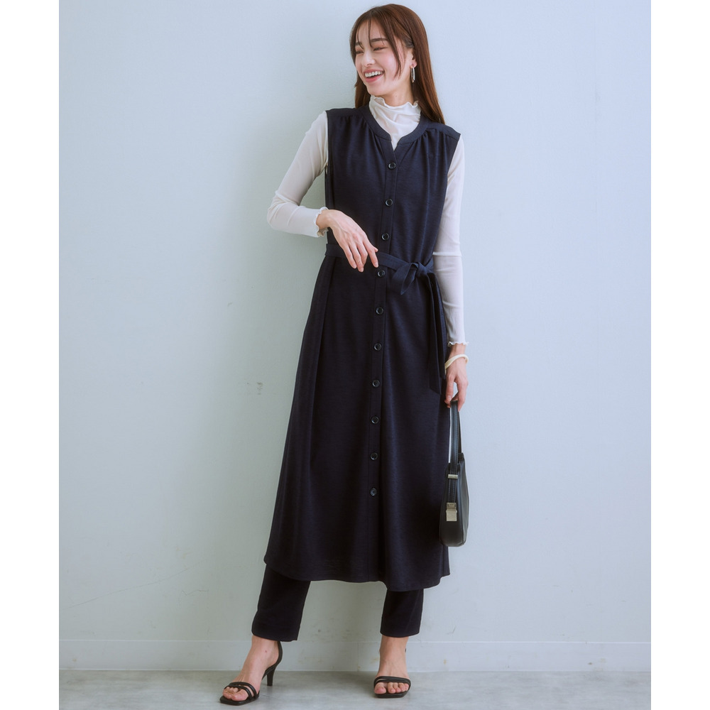 ・あえて裏地なしで仕立てたワンピースは前開きなのでロング丈ジレとして着用もOK♪