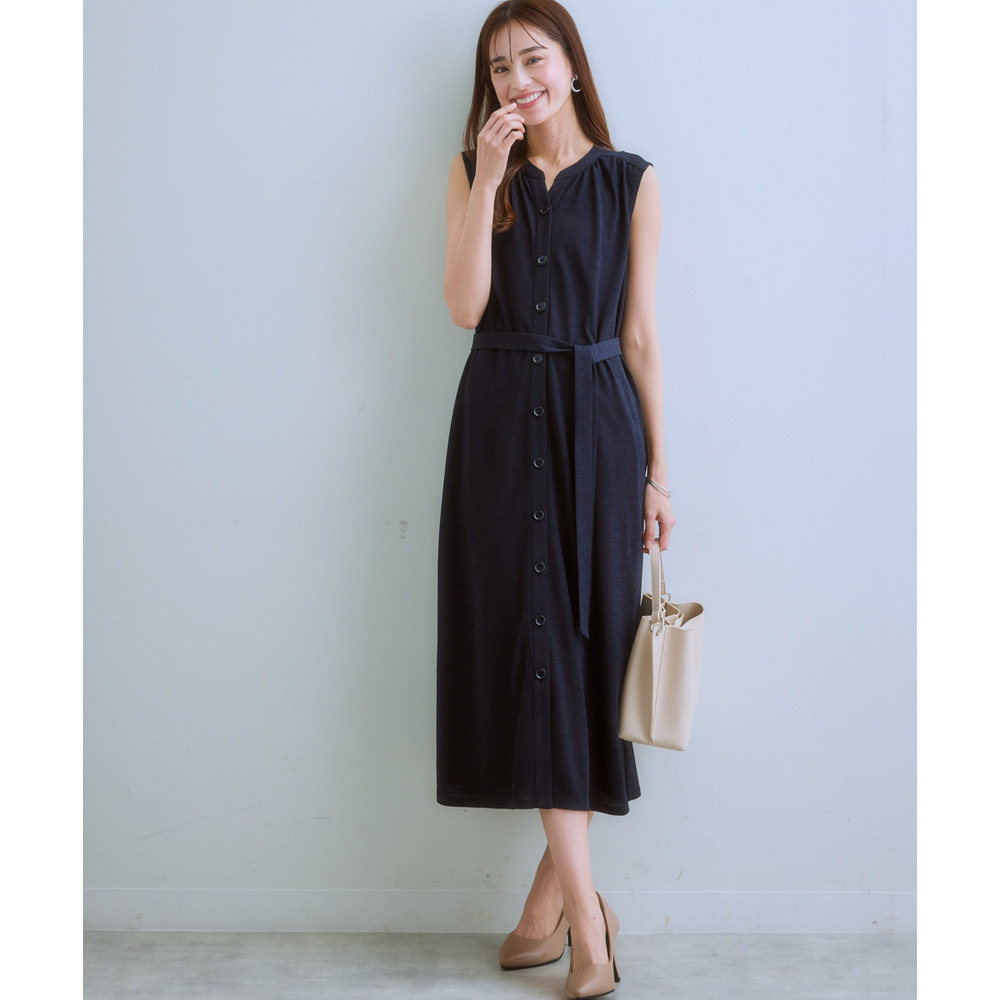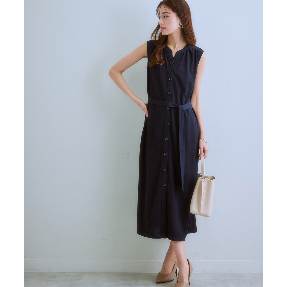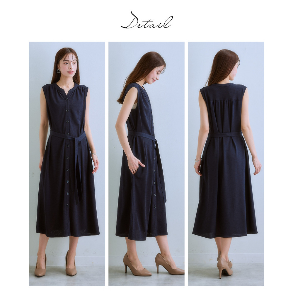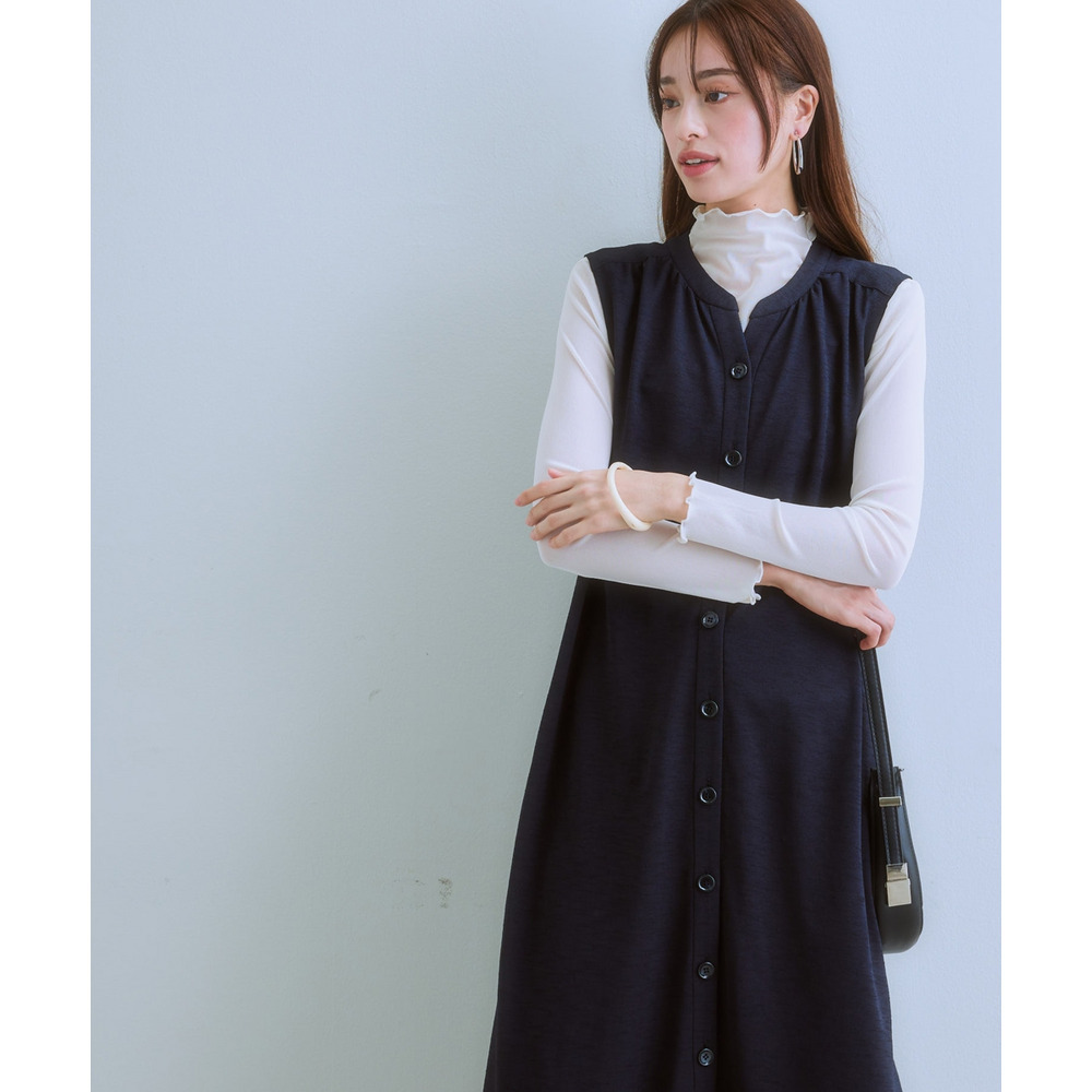 ・あえて裏地なしで仕立てたワンピースは前開きなのでロング丈ジレとして着用もOK♪