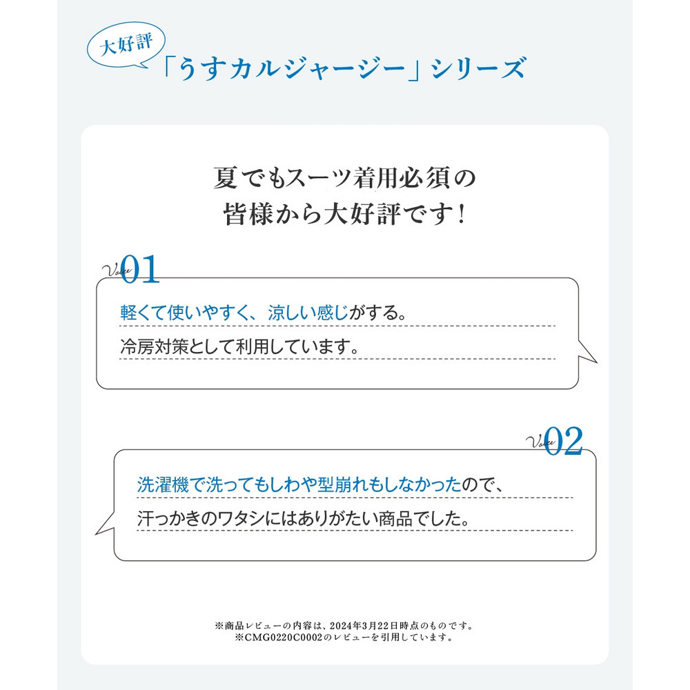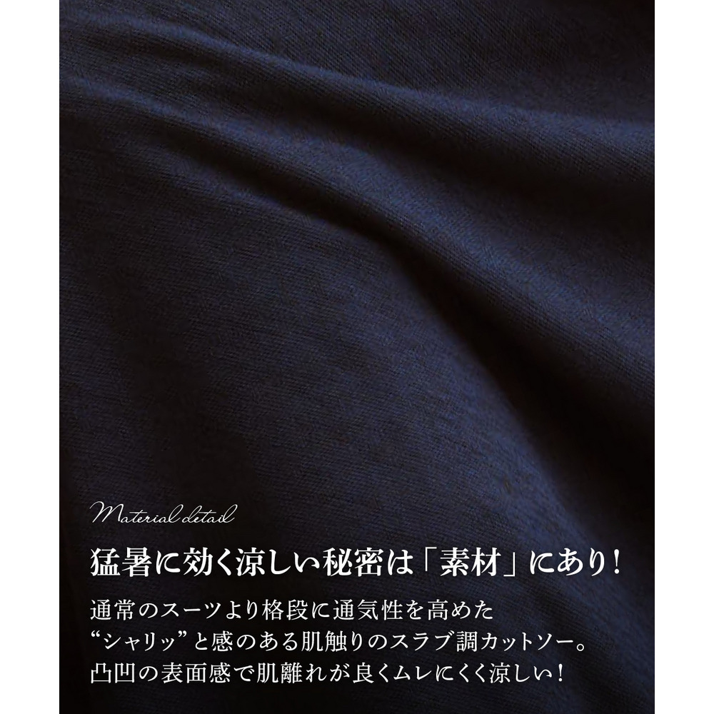 真夏のスーツスタイルを快適に過ごせるようバージョンアップさせたうすカルジャージーセットアップカセットスーツ。
