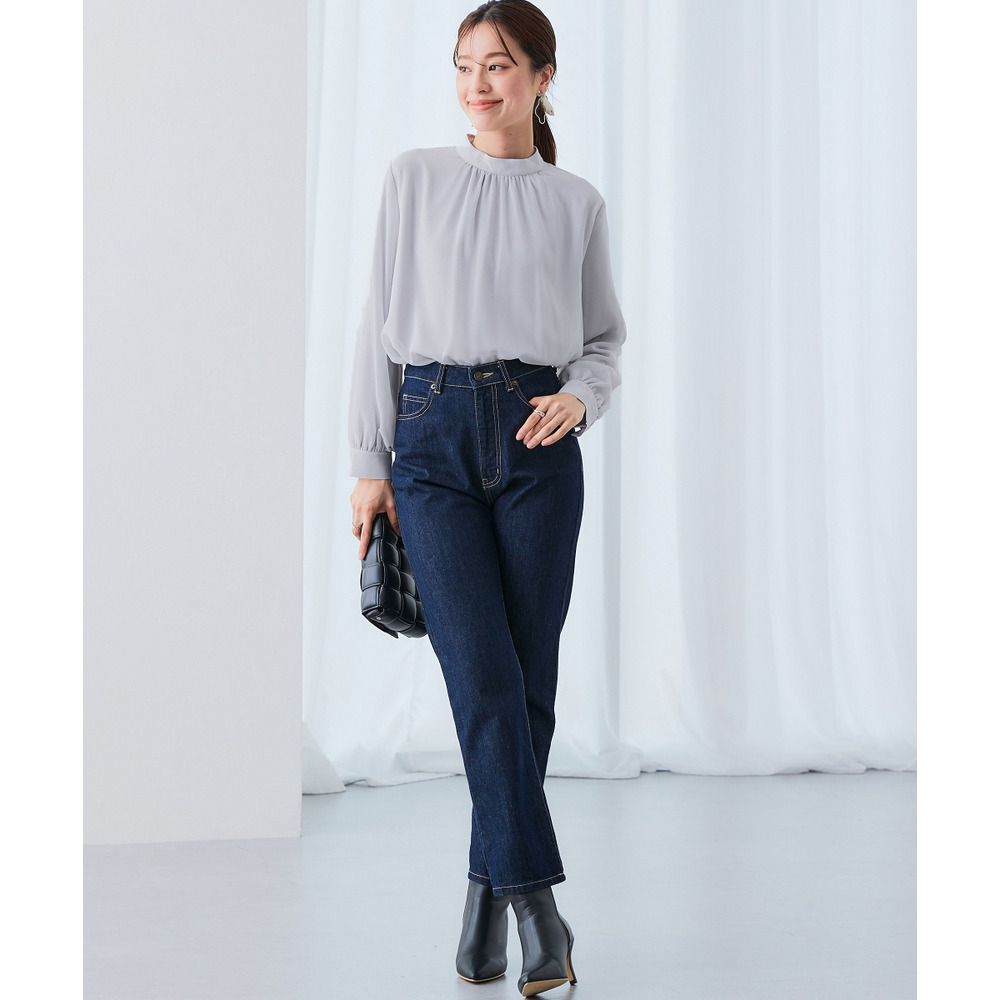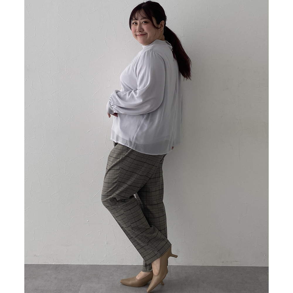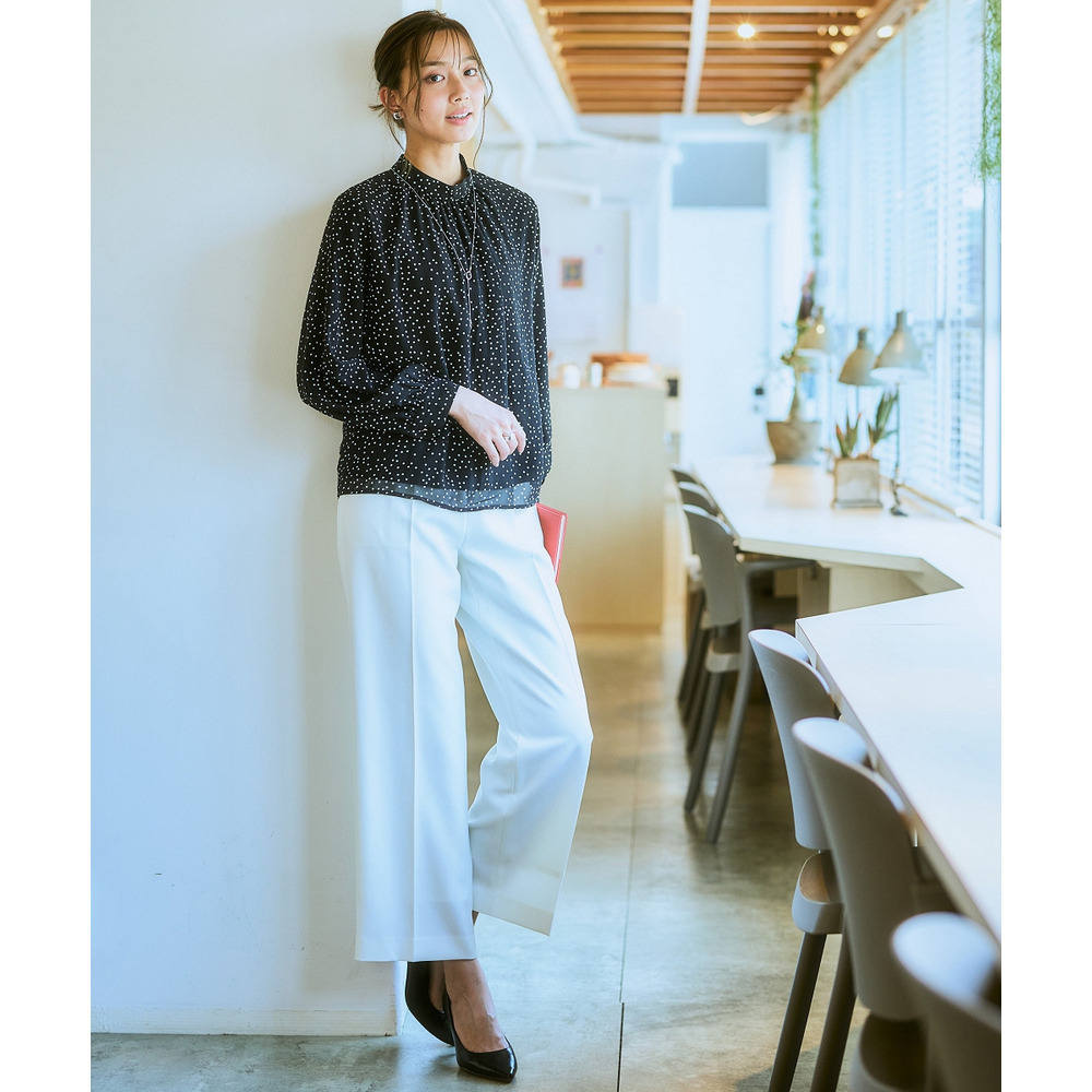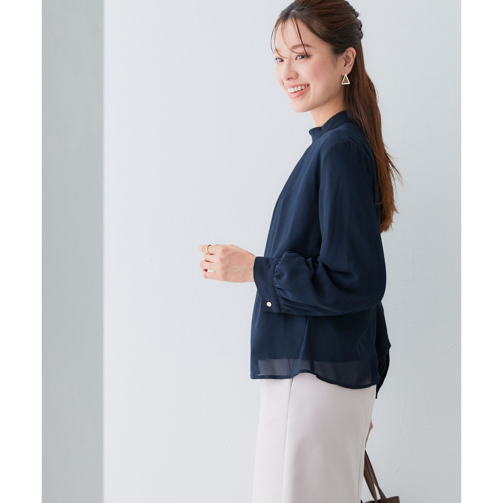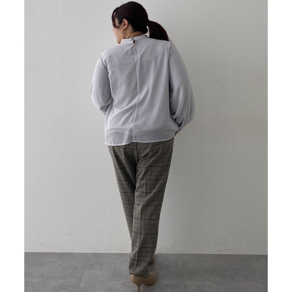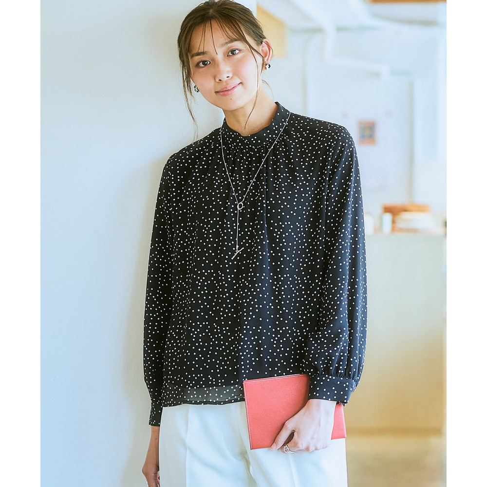 ・首元ギャザー&袖ボリュームで機能性ブラウスながらエレガントなデザイン