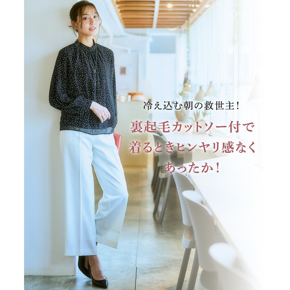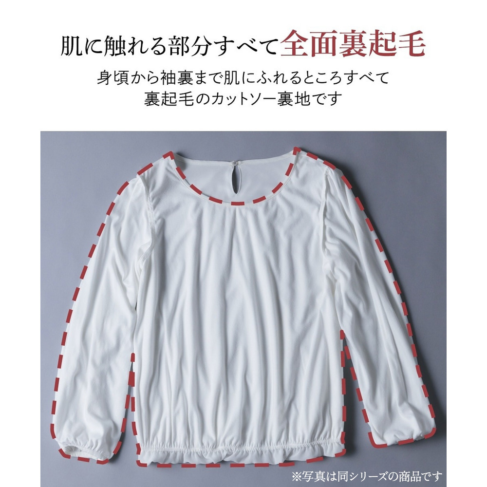 ・裏起毛のカットソー素材なので着るときもひんやりせずあたたかく、透けにくい。