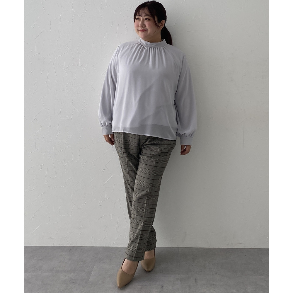 【あったか裏地付】ハイネックギャザーブラウス 大きいサイズ