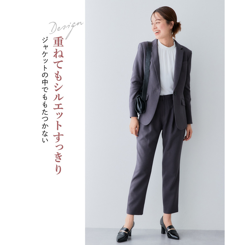 ・テーパードパンツ、ワイドパンツ、スカートなど、どんなボトムでもバランスが取りやすいので気軽にコーデを楽しめます。