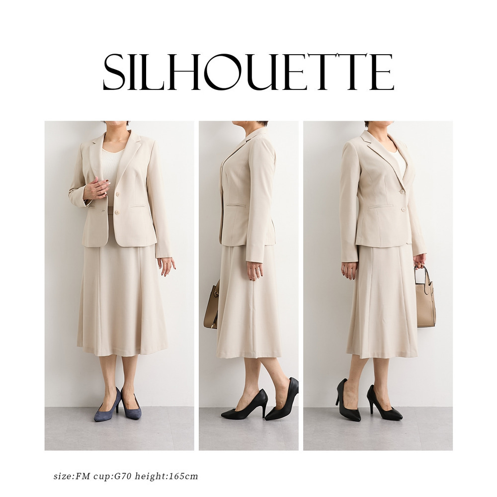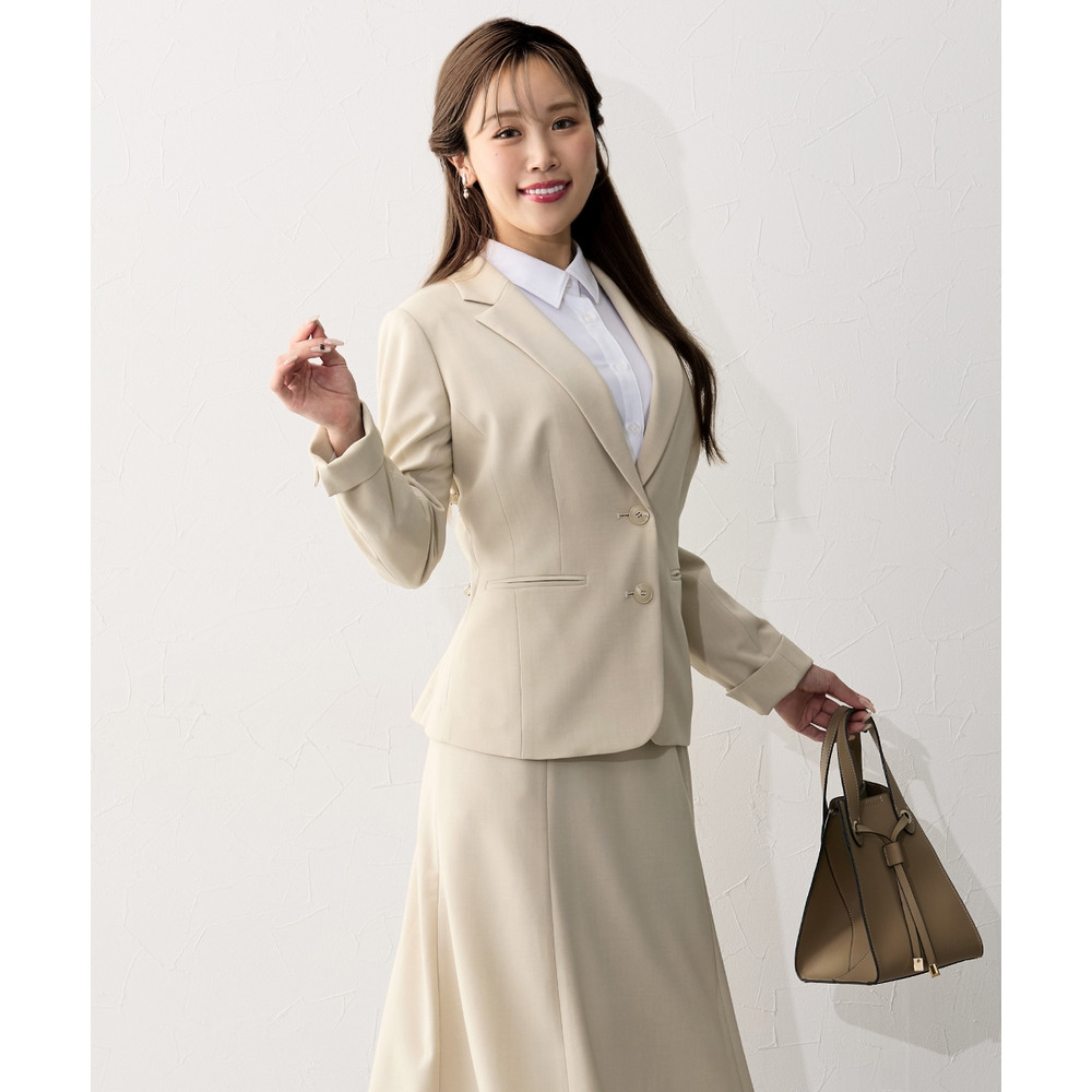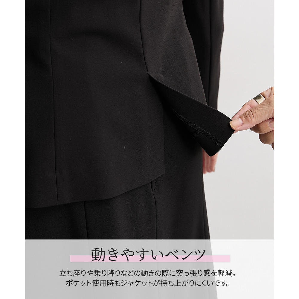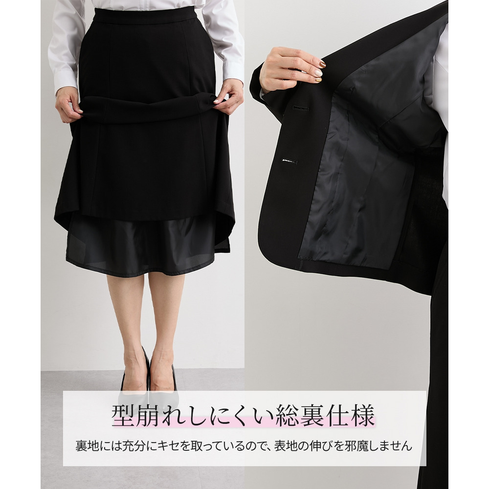 ジャケットをワンピースやお手持ちのスカート・パンツなどに合わせていただいてもOK!上下セットでのご着用はもちろん、別々でも着まわしやすいスカートスーツ◎ これ一枚でオフィスやフォーマルシーンで大活躍。
