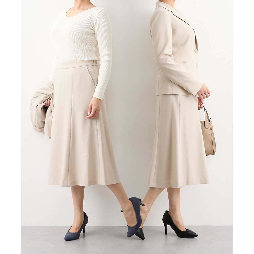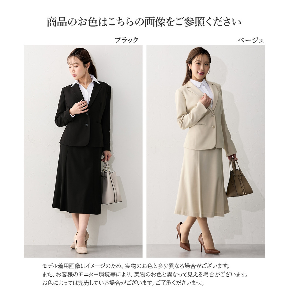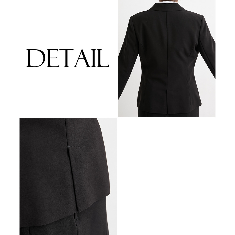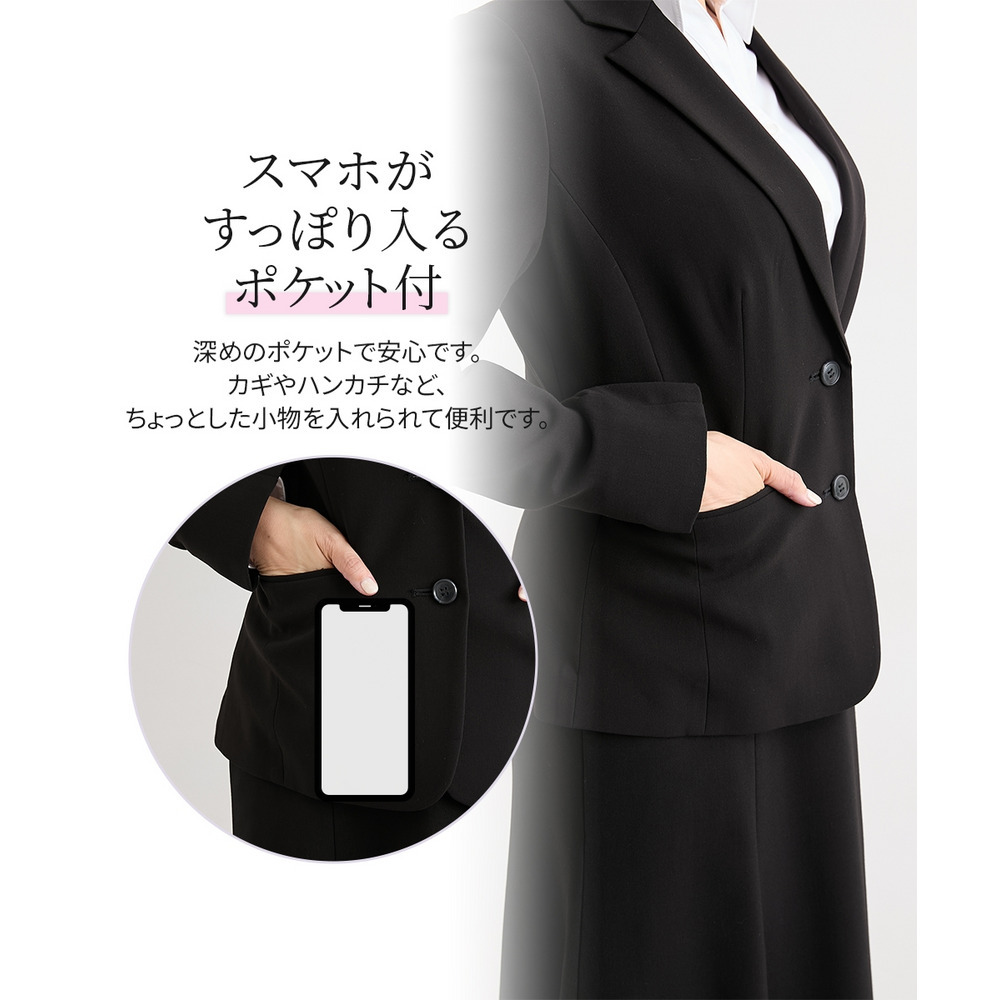 ジャケットをワンピースやお手持ちのスカート・パンツなどに合わせていただいてもOK!上下セットでのご着用はもちろん、別々でも着まわしやすいスカートスーツ◎ これ一枚でオフィスやフォーマルシーンで大活躍。