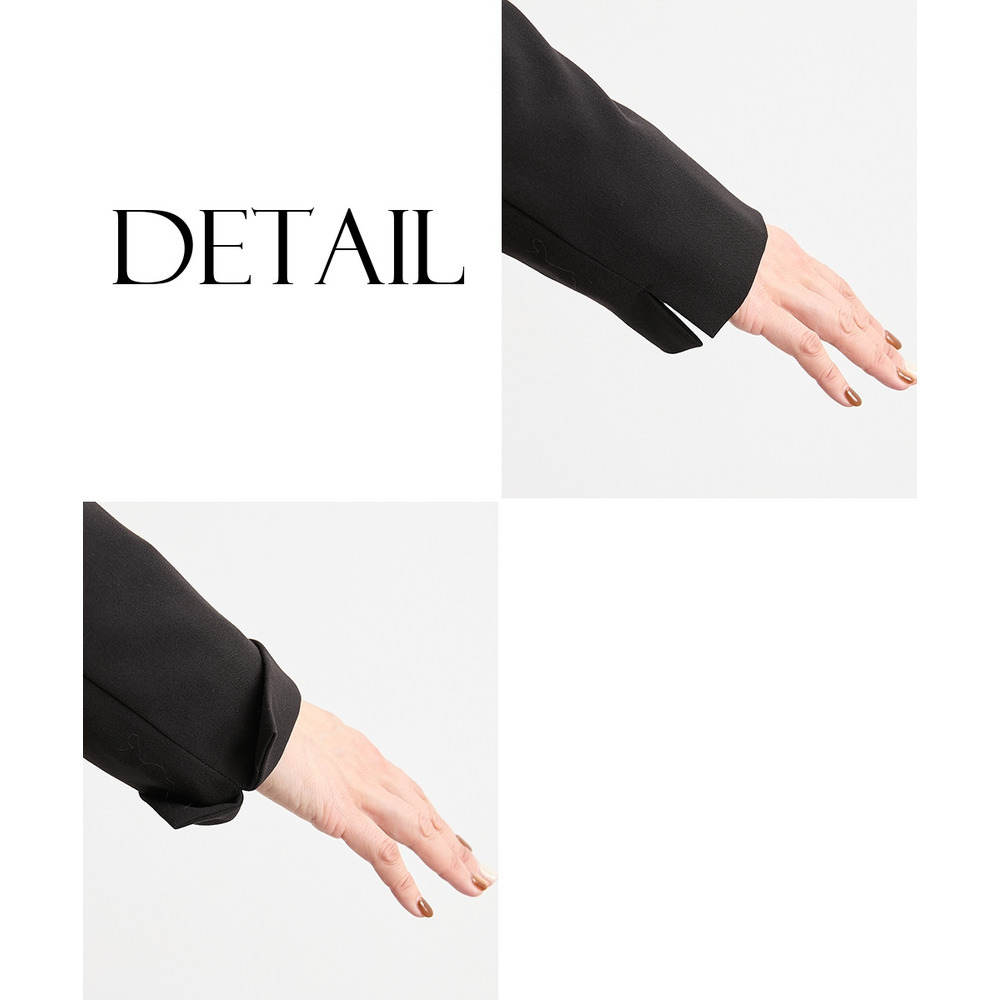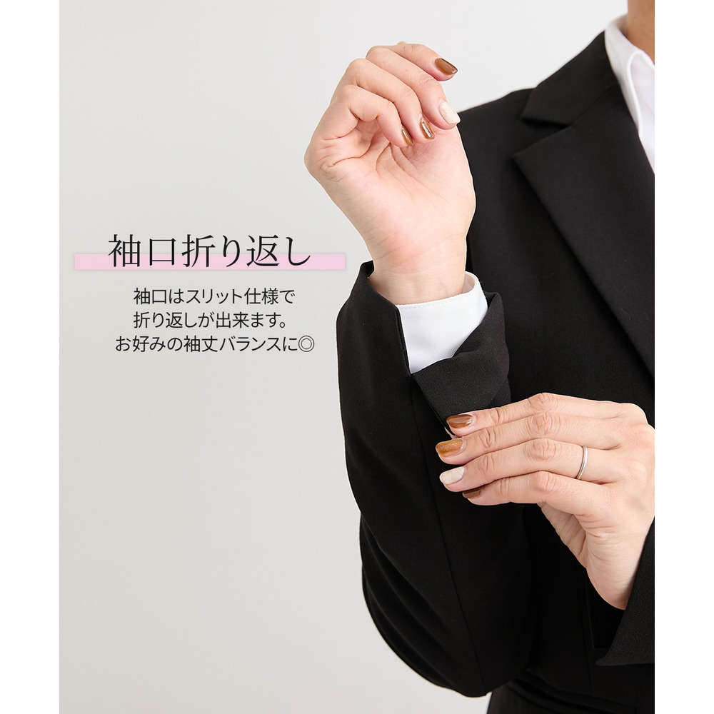 ・ジャケット袖口はスリット開きで、折り返して手首見せも可能で、個々の手の長さやお好みでアレンジが簡単です。