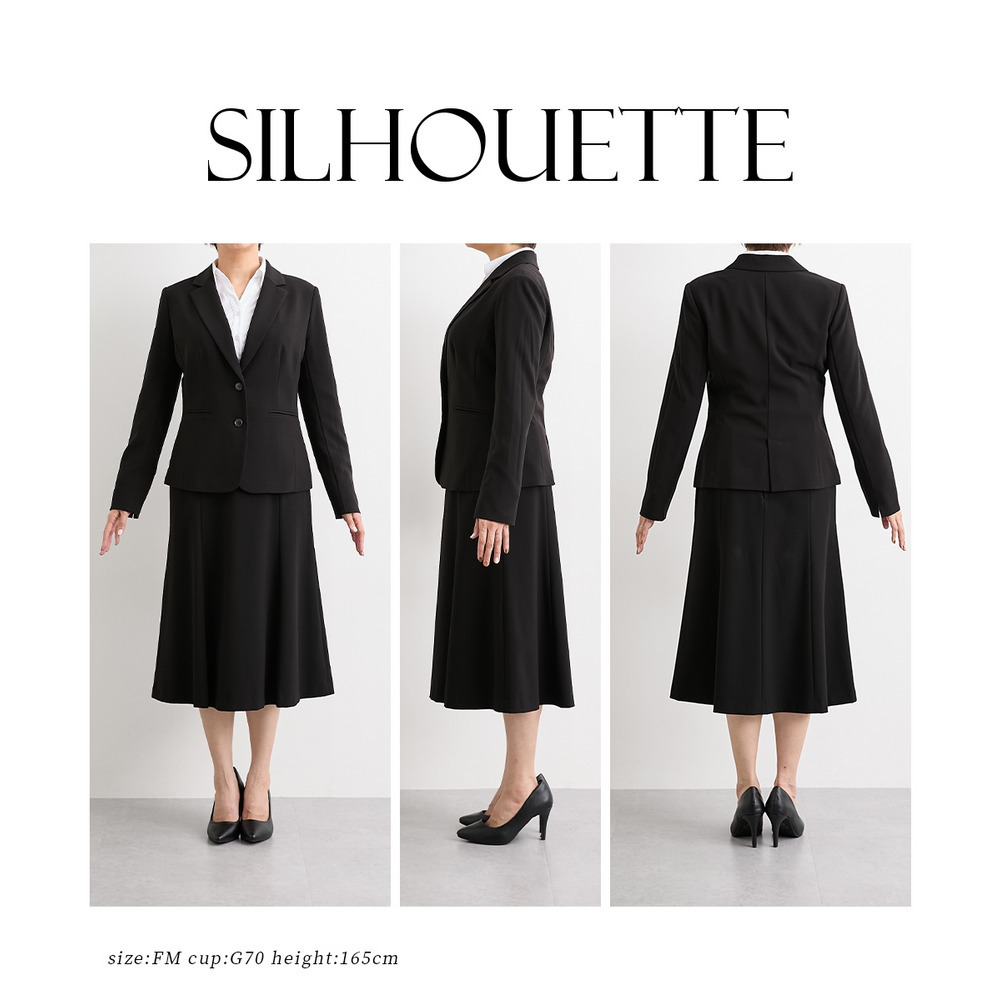 バスト対応サイズ+10cm!グラマーバストさんのためのお悩み解消・着やせが叶う専用設計のスカートスーツ。