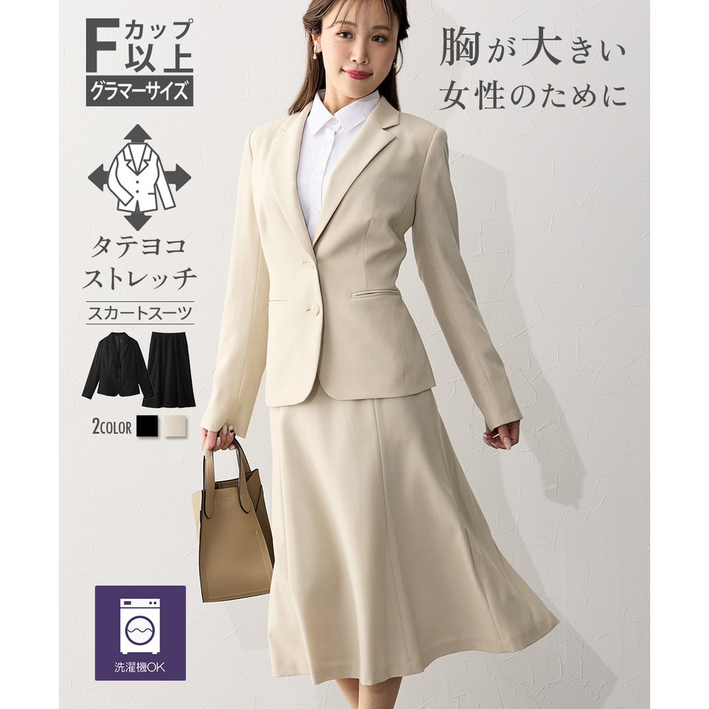 【大きい胸専用】洗えるタテヨコストレッチテーラードスカートスーツ 大きいサイズ