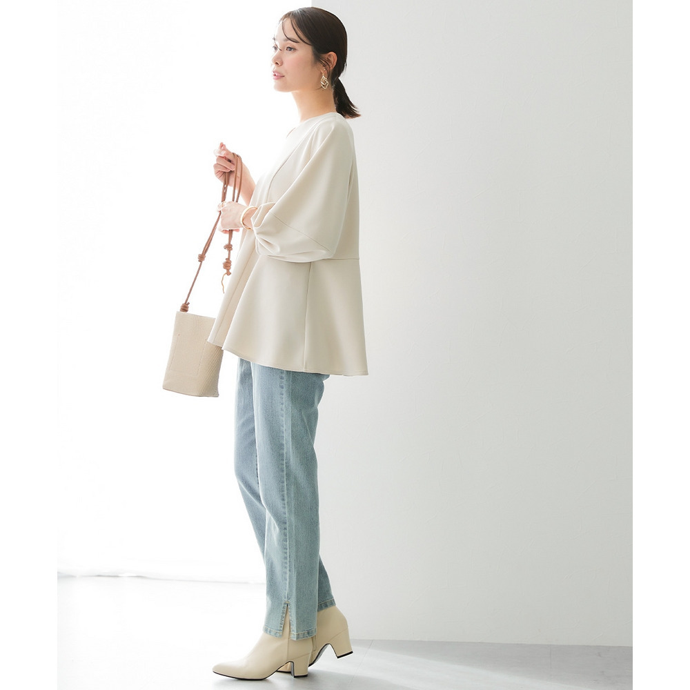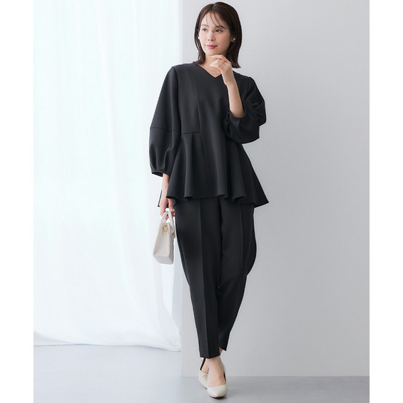 ハイウエストからのペプラムシルエットでおしゃれに体型カバーもOK!