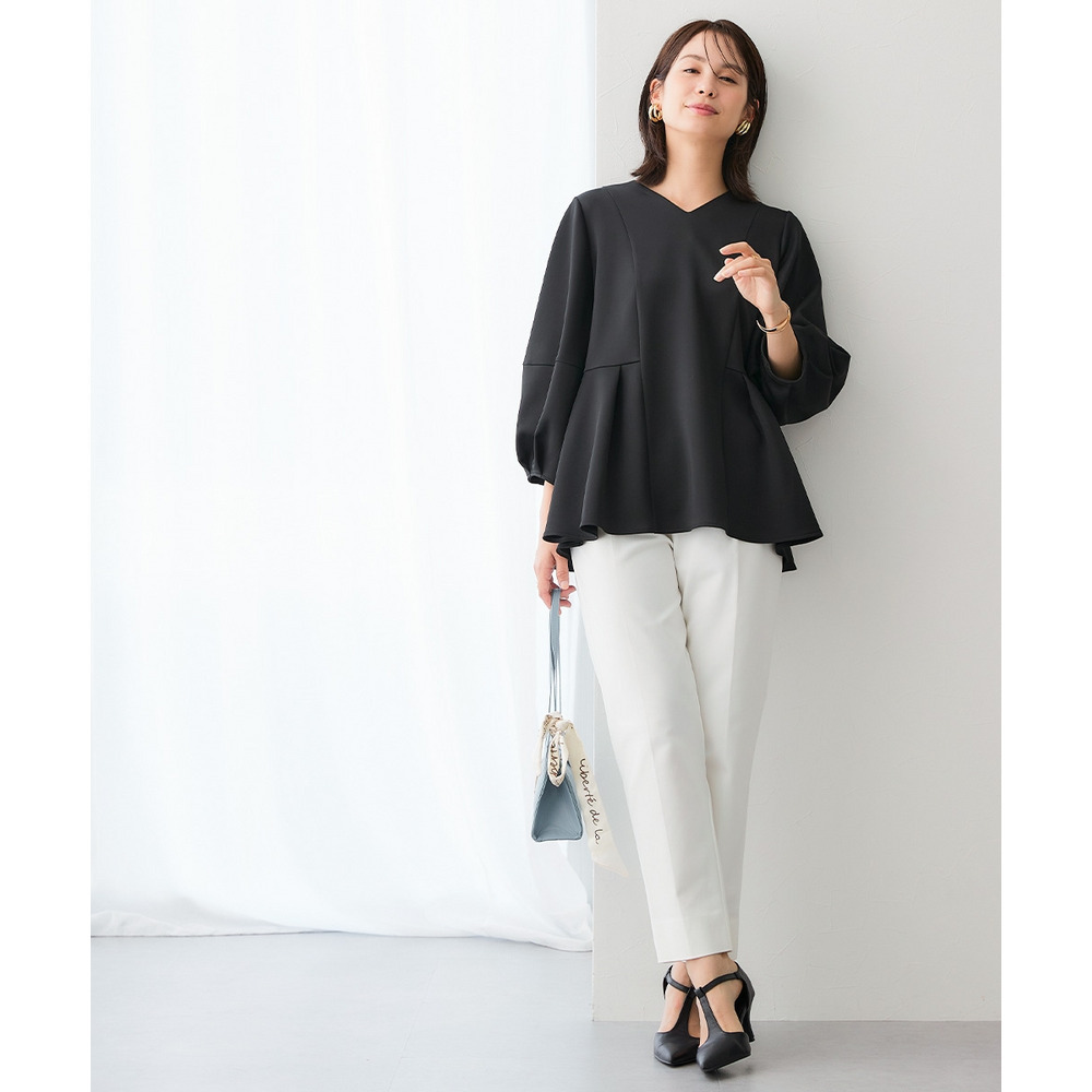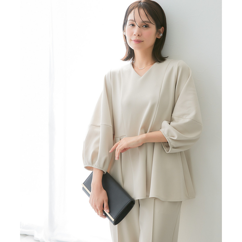 リラクシーながらもきれい見えするVネックブラウス。
