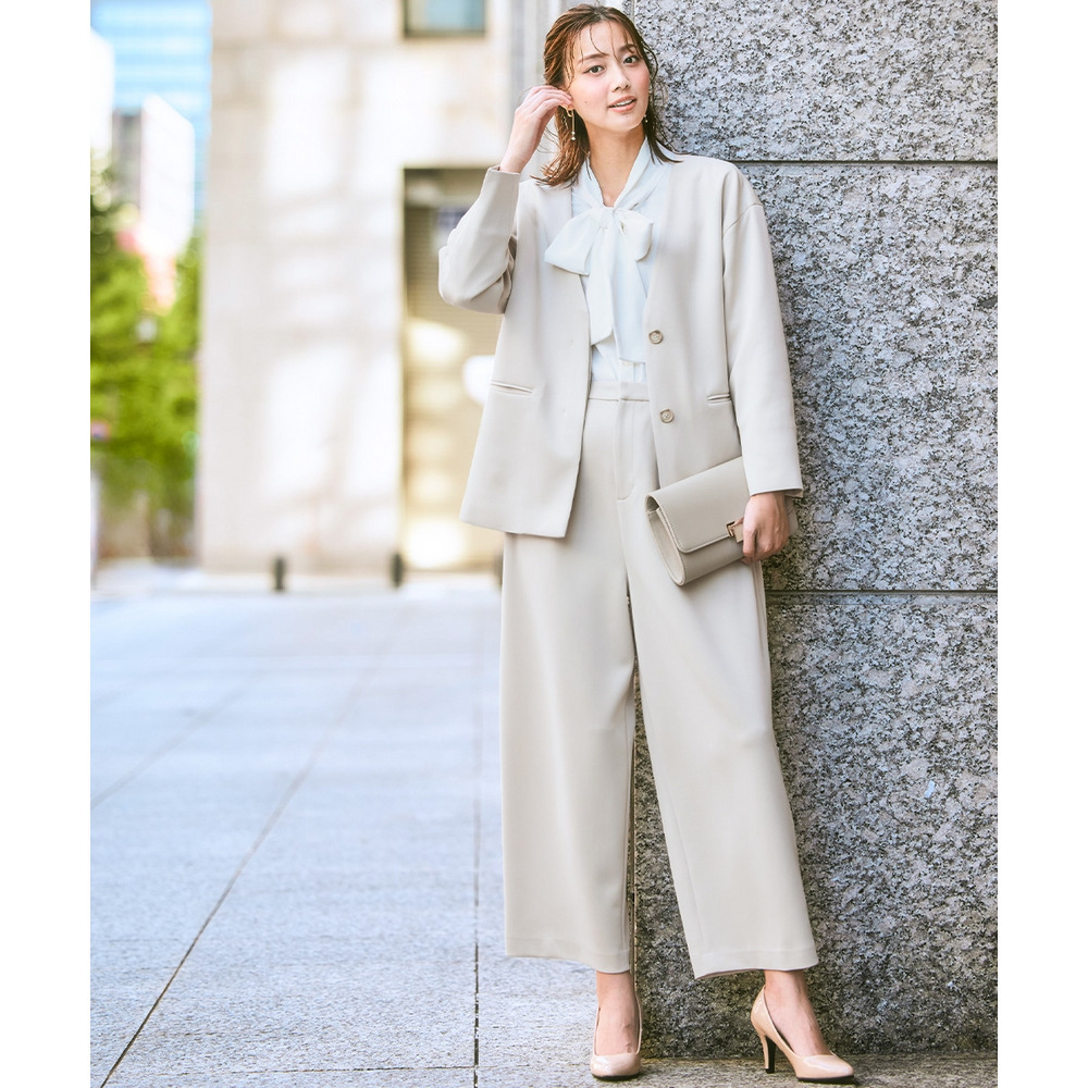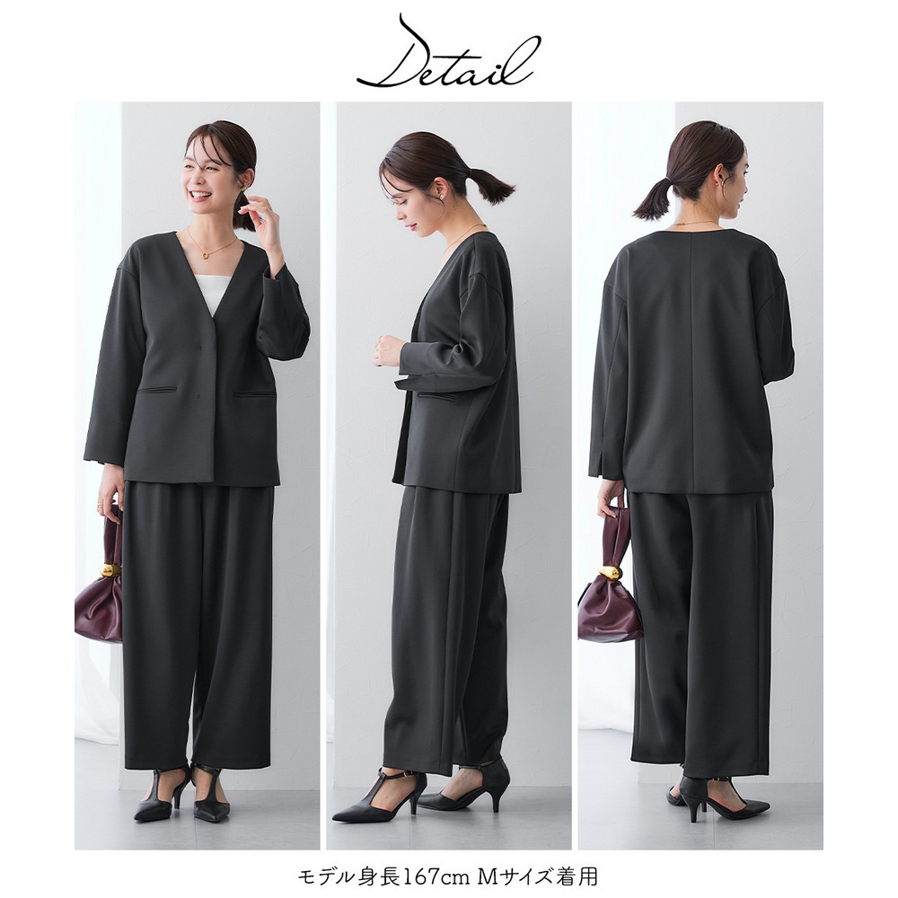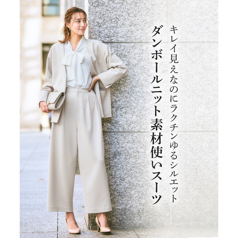 • 【レディーススーツ】ダンボールニット素材ノーカラースーツ(ジャケット+ワイドパンツ) 大きいサイズ7