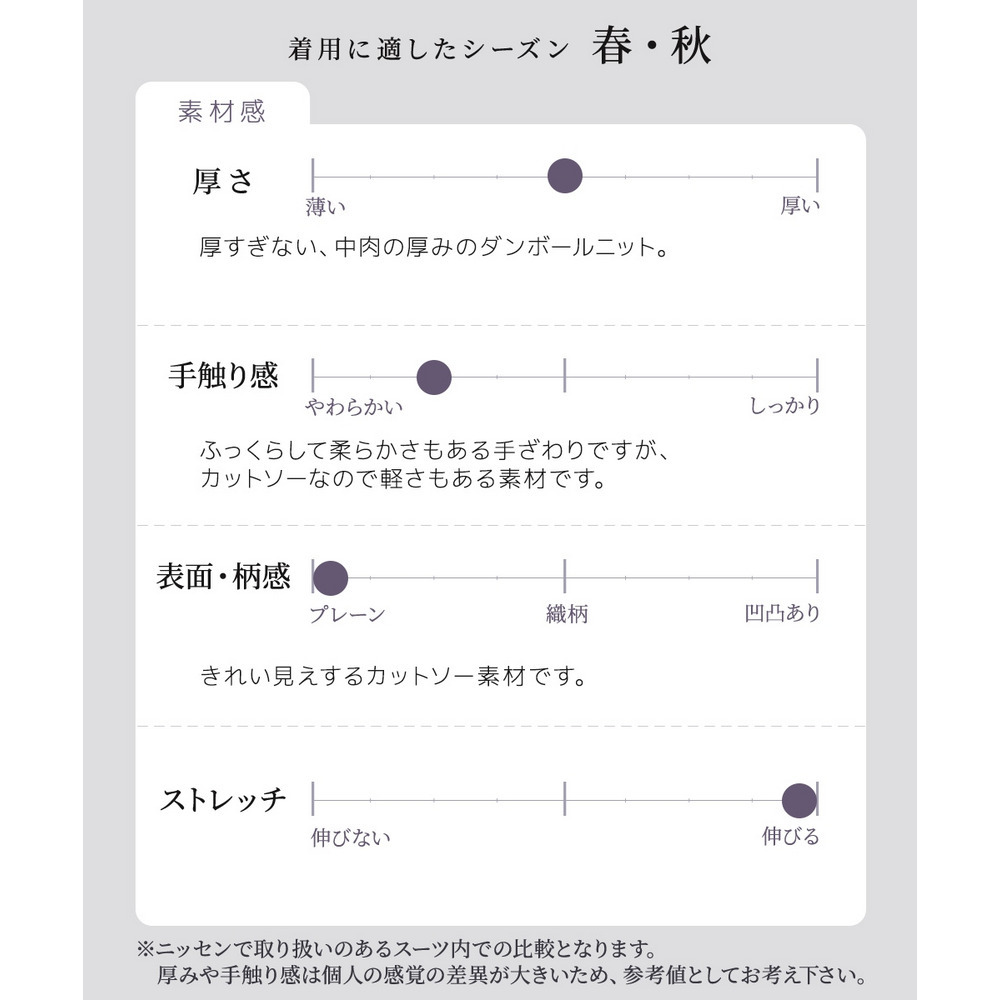 カットソーなのにきちんと感のあるきれい見えする表面感が魅力。