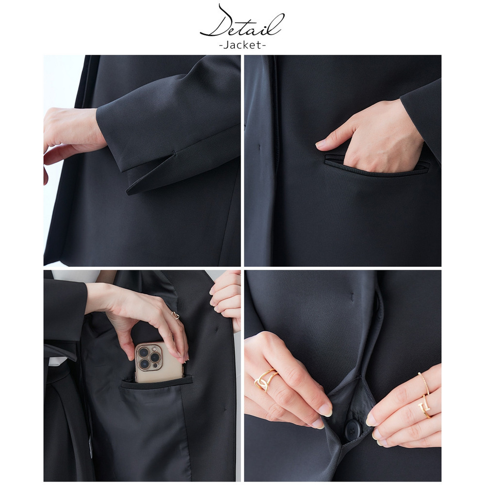 通勤やお仕事服として、フォーマルな装いとして、単品使いでのカジュアルな着こなしなどもOK!スーツで着用してもそれぞれ単品でも使える・便利でお得なセットアップスーツです!