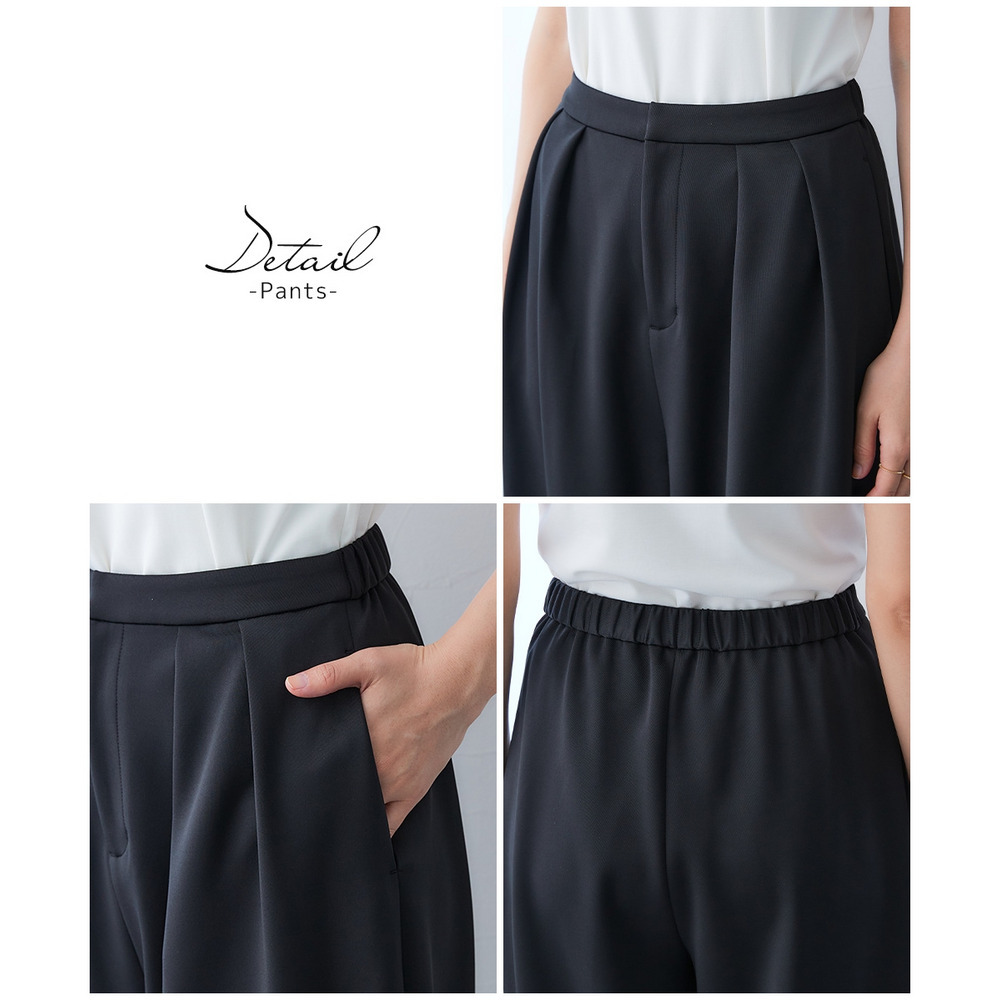 少しボリューム感のあるワイドパンツは体のラインを拾わず、イマドキシルエットで、こっそり気になる部分をカバーできちゃいます☆