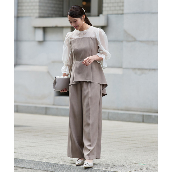 ・パンツスタイルでも女性らしく、華やかな印象に