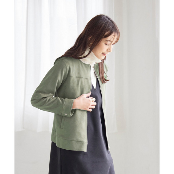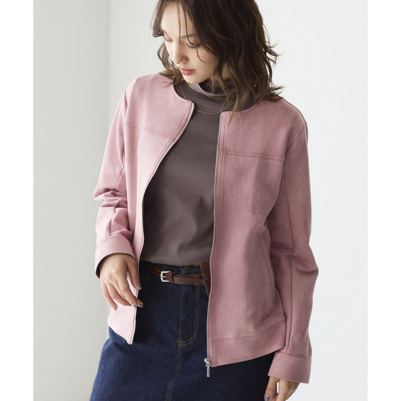 フェイクスエードノーカラーライダースジャケット 大きいサイズ