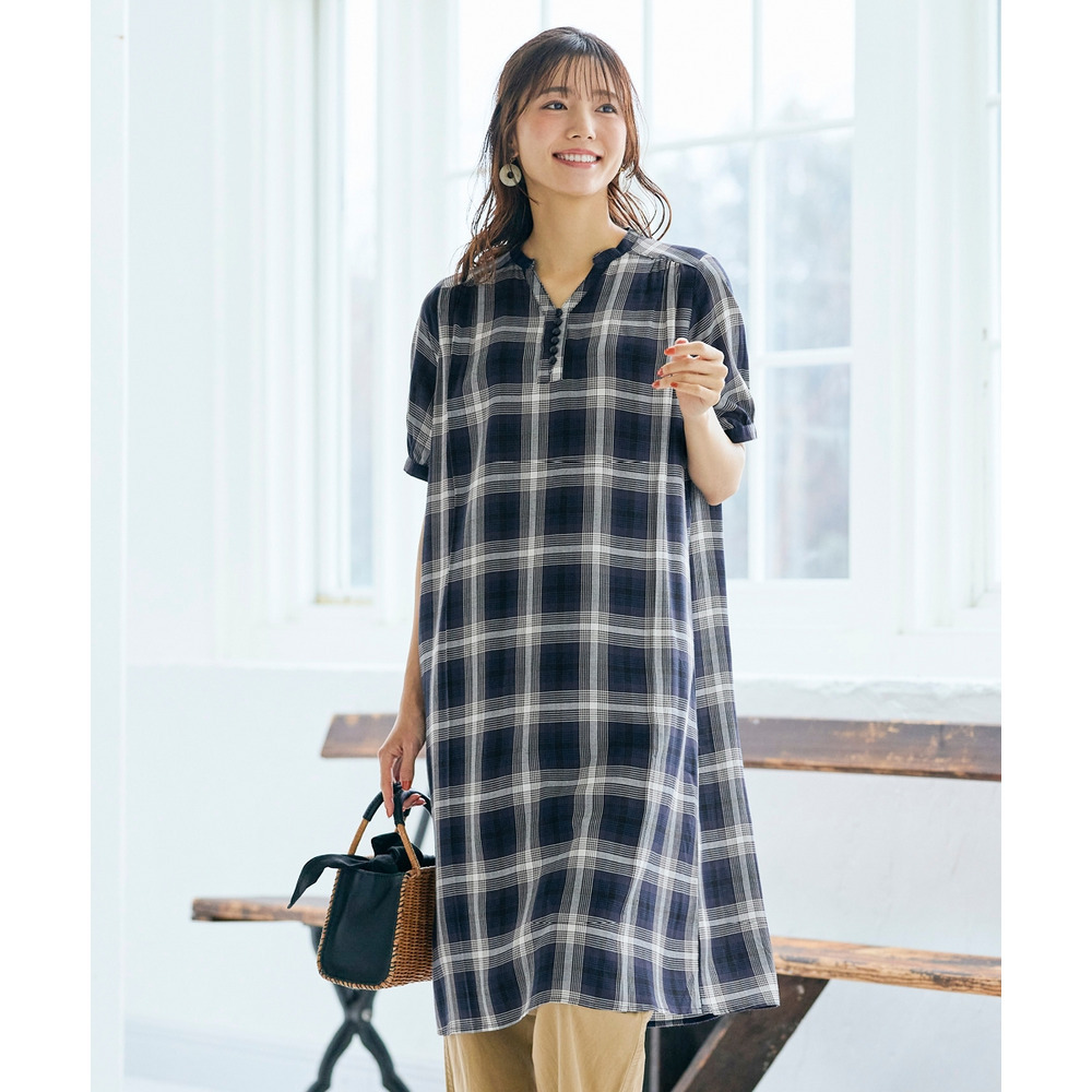 • 接触冷感うすカル柔らか5分袖バンドカラーワンピース 大きいサイズ9