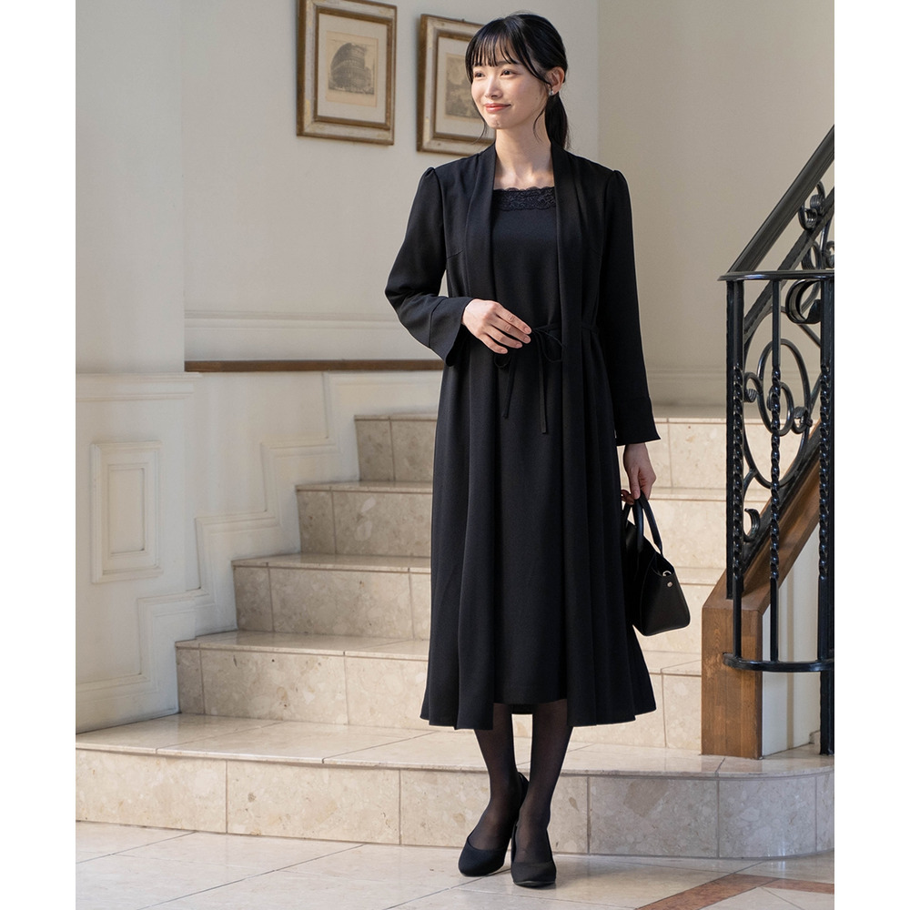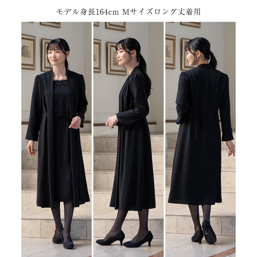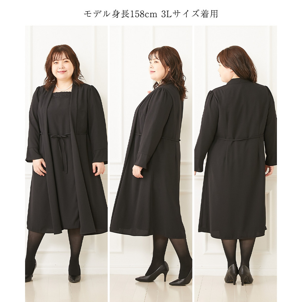 【喪服・礼服】洗える防しわ軽い羽織りアンサンブル風前開きワンピース 大きいサイズ