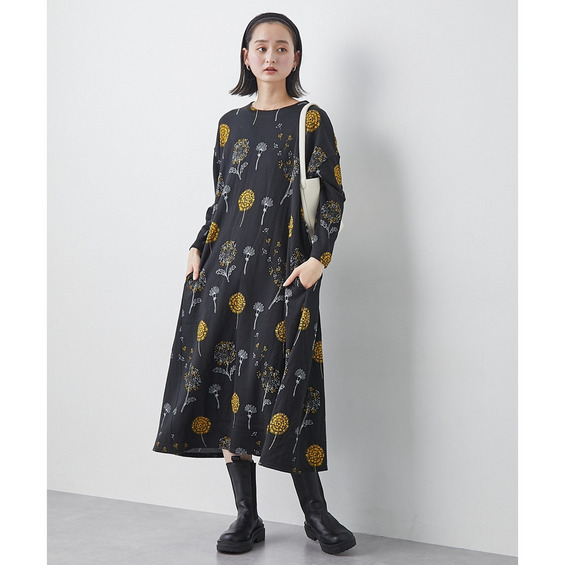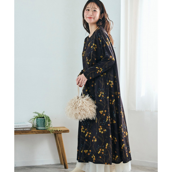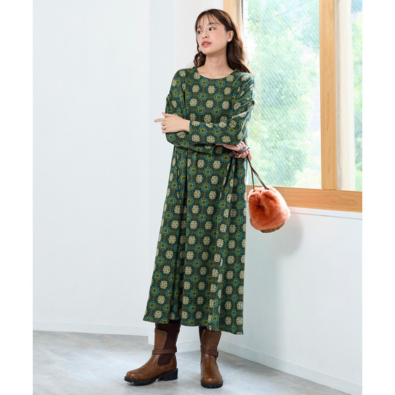足首まですっぽりカバーできるマキシ丈のワンピース。