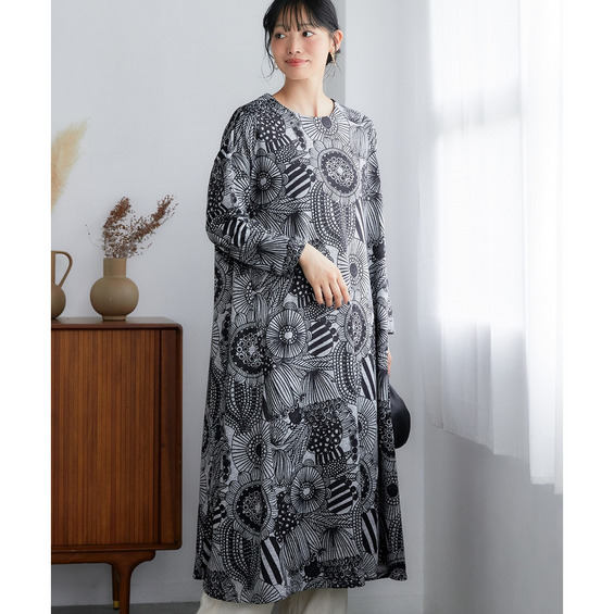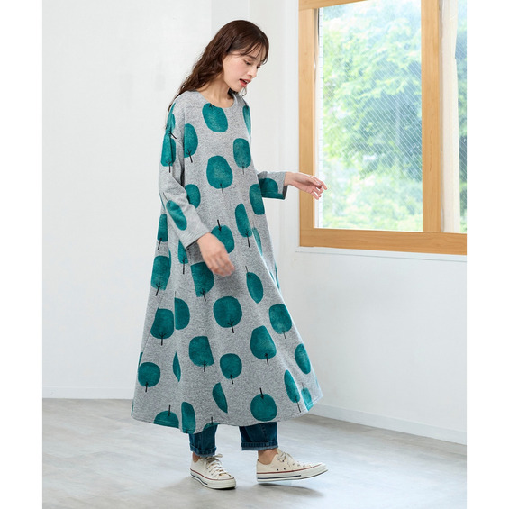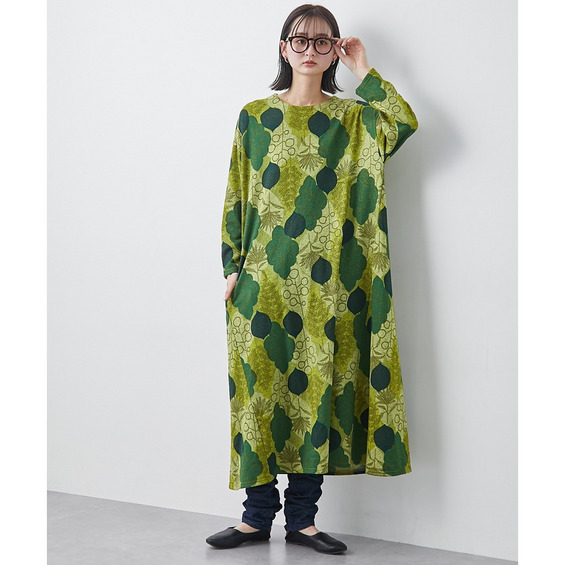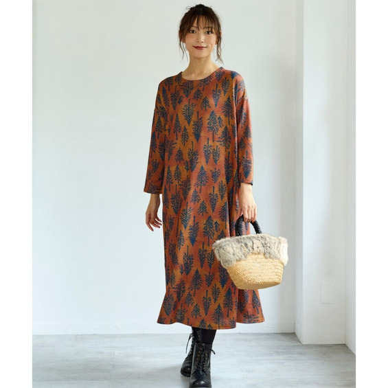 | 素材 | 品質:ポリエステル95%・ポリウレタン5% 柄の出方が多少異なる場合があります。デザインの特性上ゆったりとしたシルエットとなってます。 透け感:なし 伸縮性:あり 生地の厚み:普通 光沢感:なし 裏地:なし ポケット:あり(両脇) 季節:秋・冬向き シルエット:ゆったり |