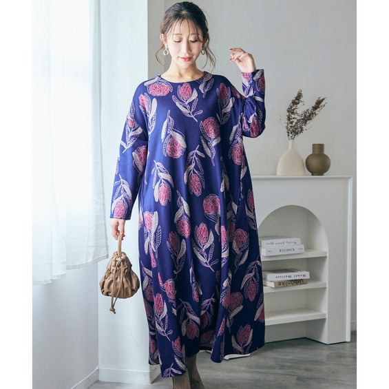 【BARNDOORコラボ】裏起毛カットソーロング丈ワンピース 大きいサイズ