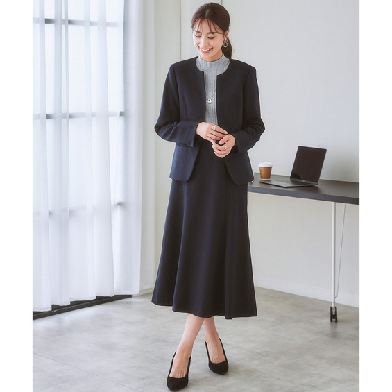 • 【レディーススーツ】洗えるウール調ストレッチロング丈マーメイドスカートスーツ(キーネックジャケット+スカート) 大きいサイズ23