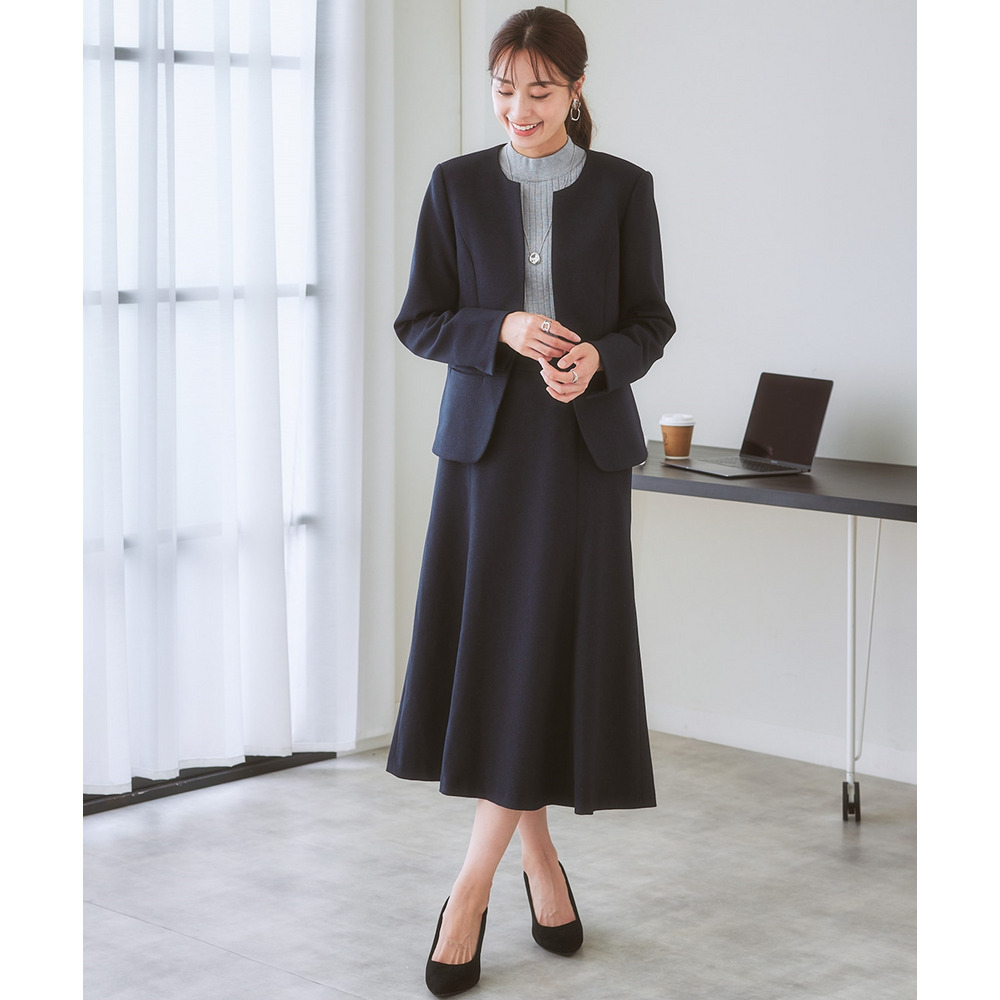 • 【レディーススーツ】洗えるウール調ストレッチロング丈マーメイドスカートスーツ(キーネックジャケット+スカート) 大きいサイズ8