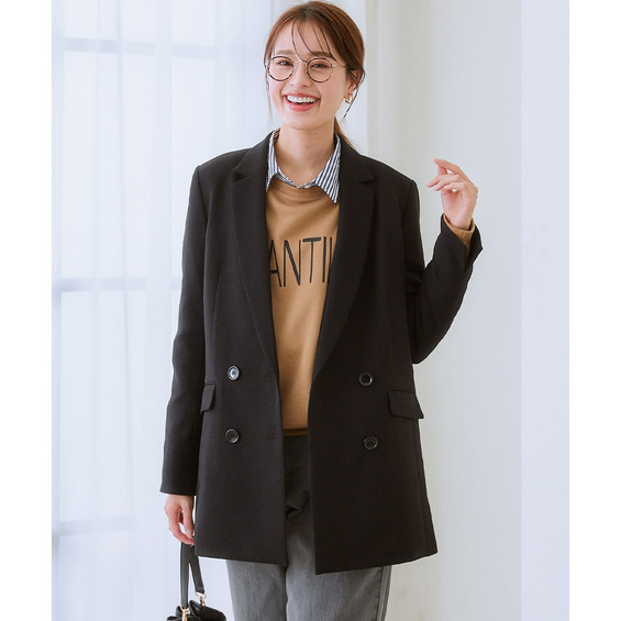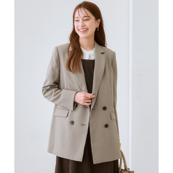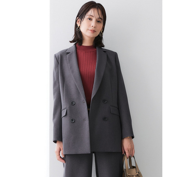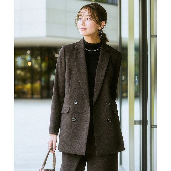 ◆洗えるウール調セットアップカセット服でお仕事服もおしゃれ&快適に冬シフト◆こなれ感ときちんと感両方かなうダブルブレストジャケットで体型カバーもかなえます