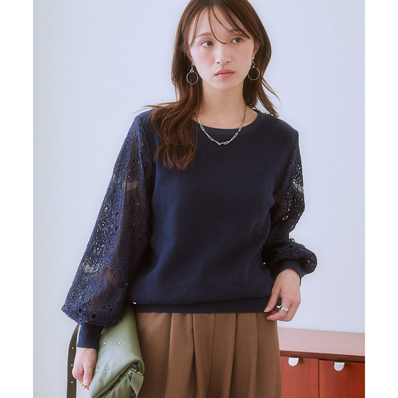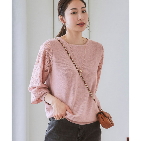 【ふんわりモチモチ素材】レース袖ニット 大きいサイズ