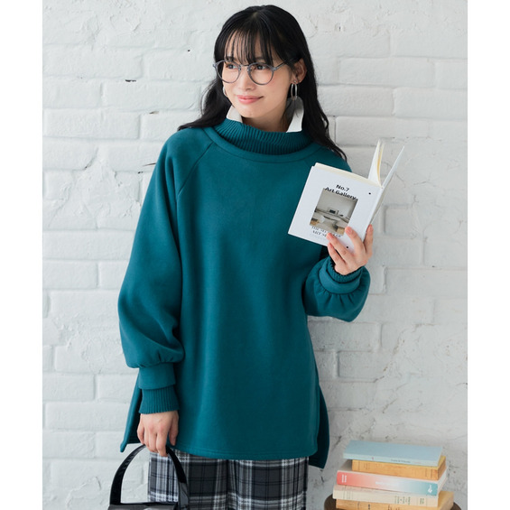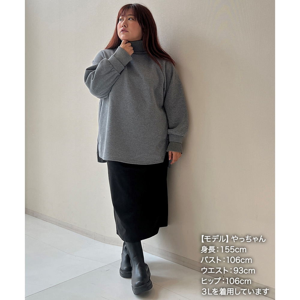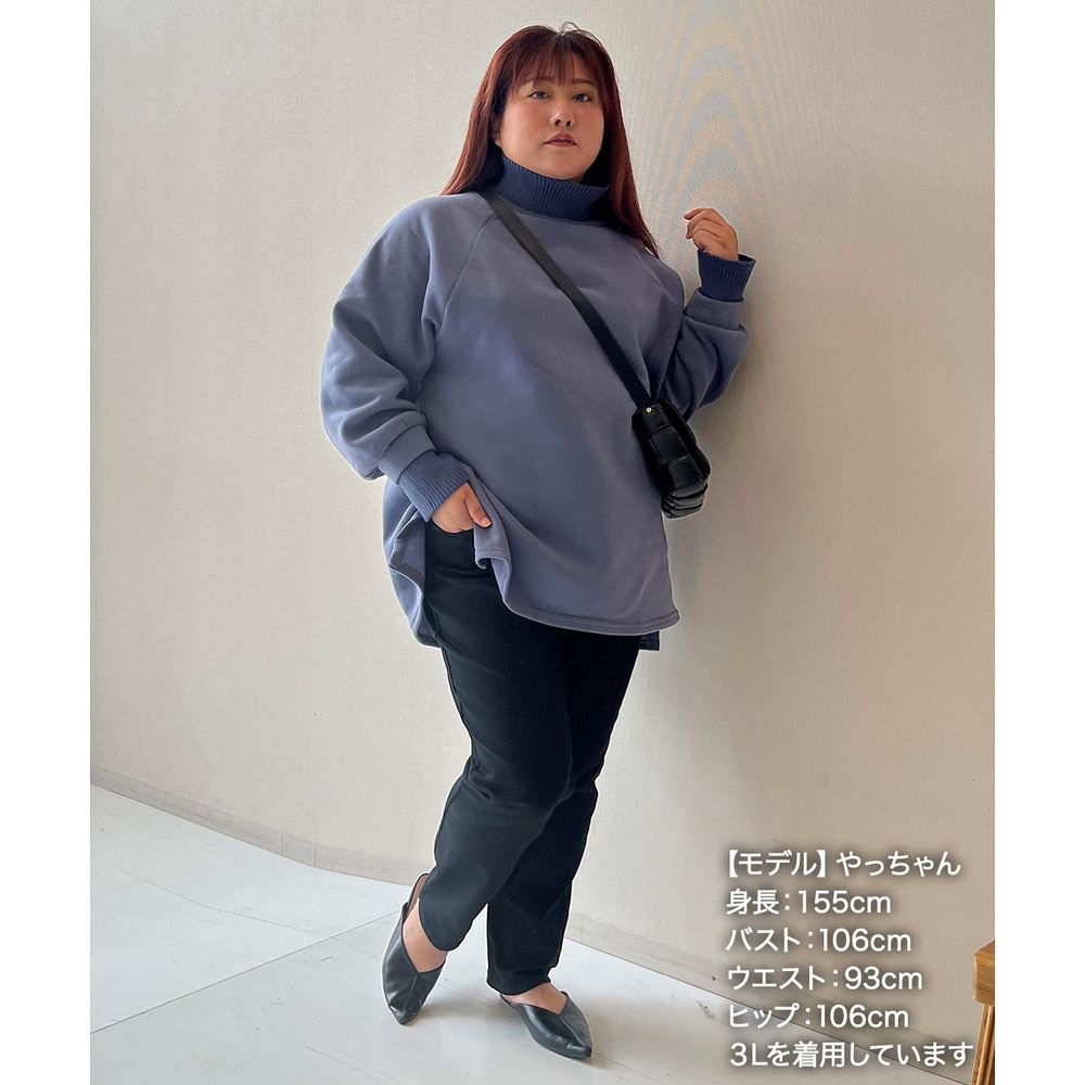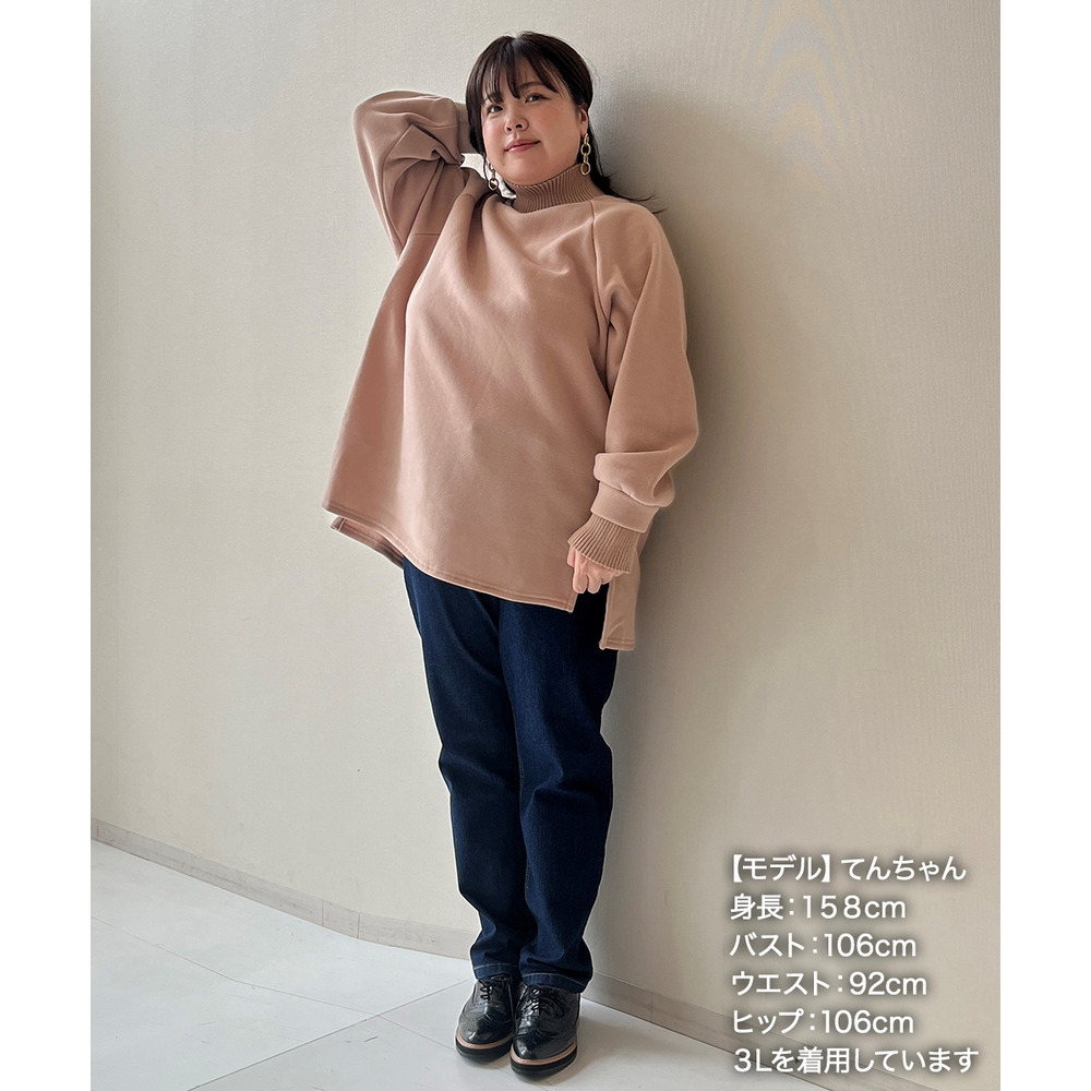 裏起毛リブ切替ラグランスリーブチュニック 大きいサイズ