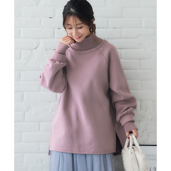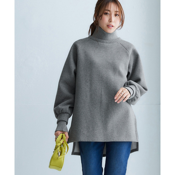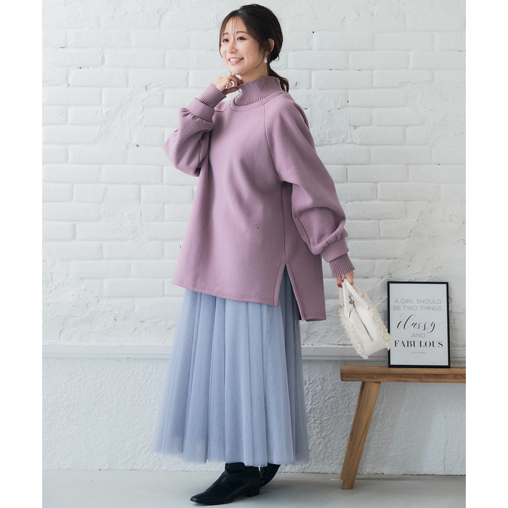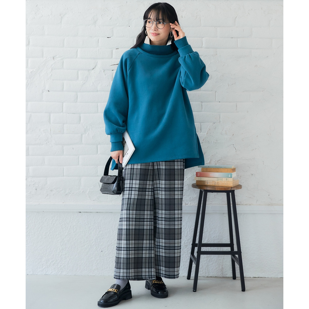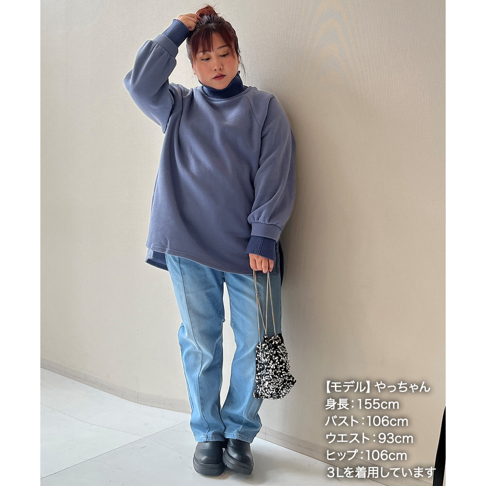 裏起毛リブ切替ラグランスリーブチュニック 大きいサイズ