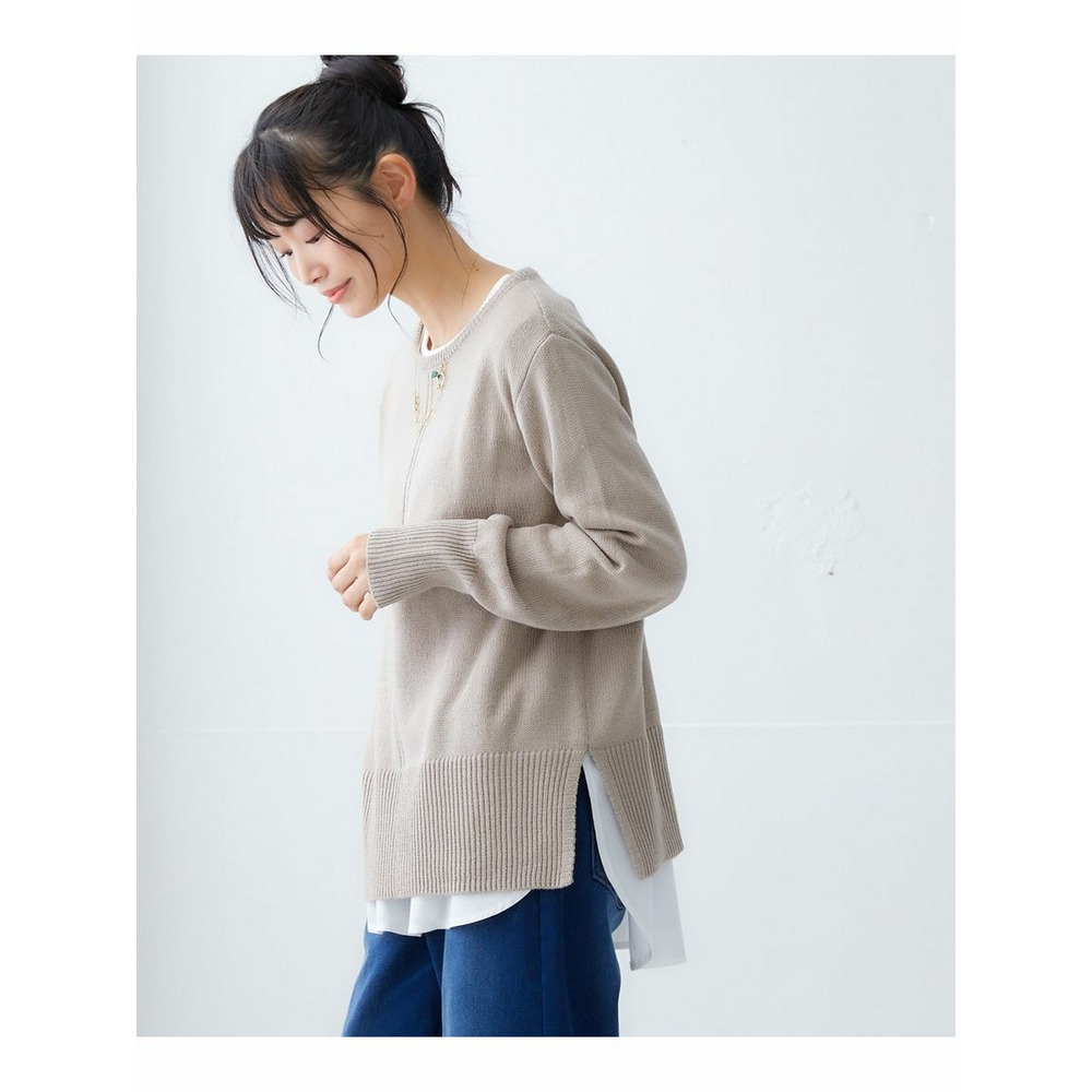 • 【プチプライス】裾リブ切替クルーネックニット 大きいサイズ15