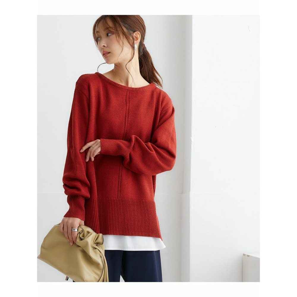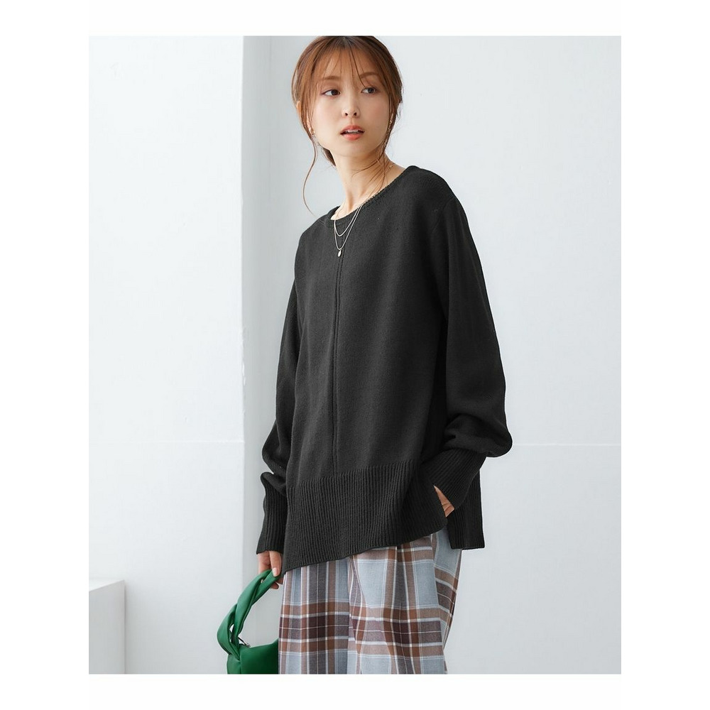 • 【プチプライス】裾リブ切替クルーネックニット 大きいサイズ12