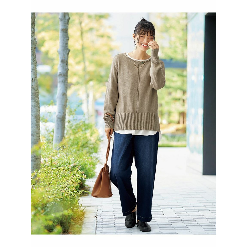 • 【プチプライス】裾リブ切替クルーネックニット 大きいサイズ25