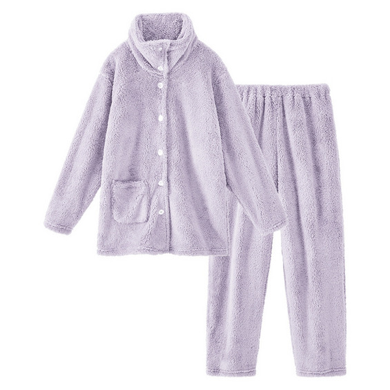 ふわぬくマイクロファー首あったか前開きパジャマ