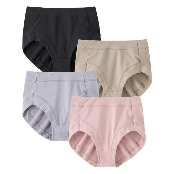 ヒップをつつむ お腹・脚口らくちん綿混ストレッチ深ばき丈ショーツ4枚組