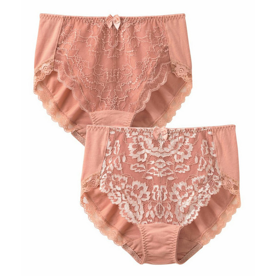 エヌフルレシリーズから綿混深ばき丈コーディネートショーツ2枚組が登場!お揃いのブラジャーは別売りで販売しております。深めの丈のショーツは、お腹部分を優しくカバーします。前脚口にもレース仕様なのでしめつけない優しいはきごこちです。レースのデザインは、華やかさをプラス。デイリーにぴったりのアイテムです。