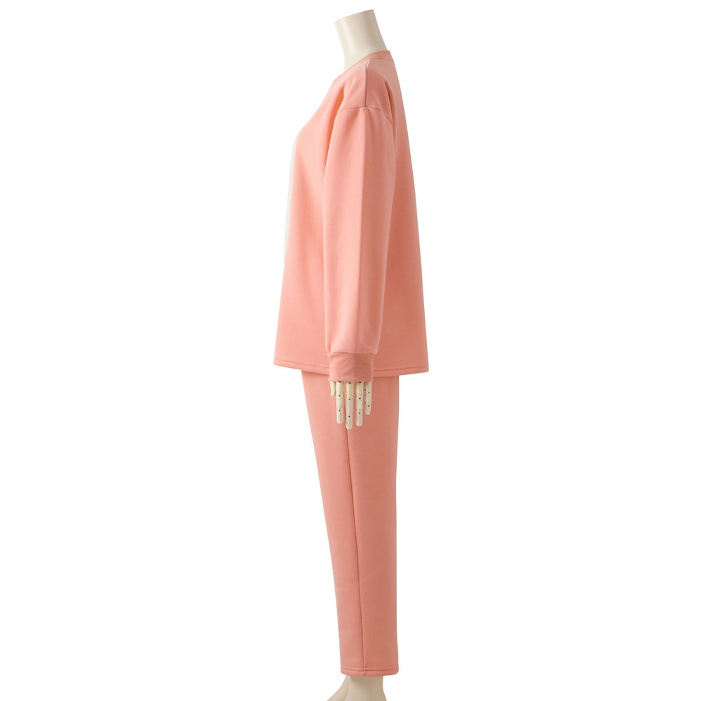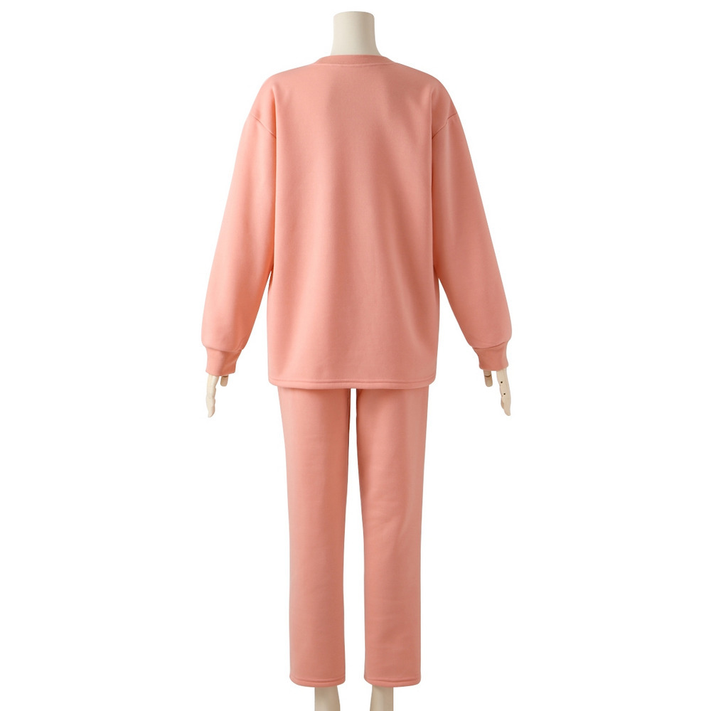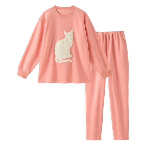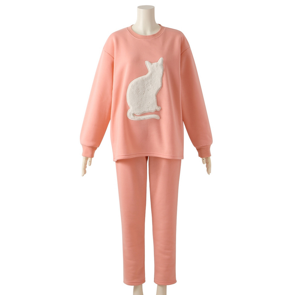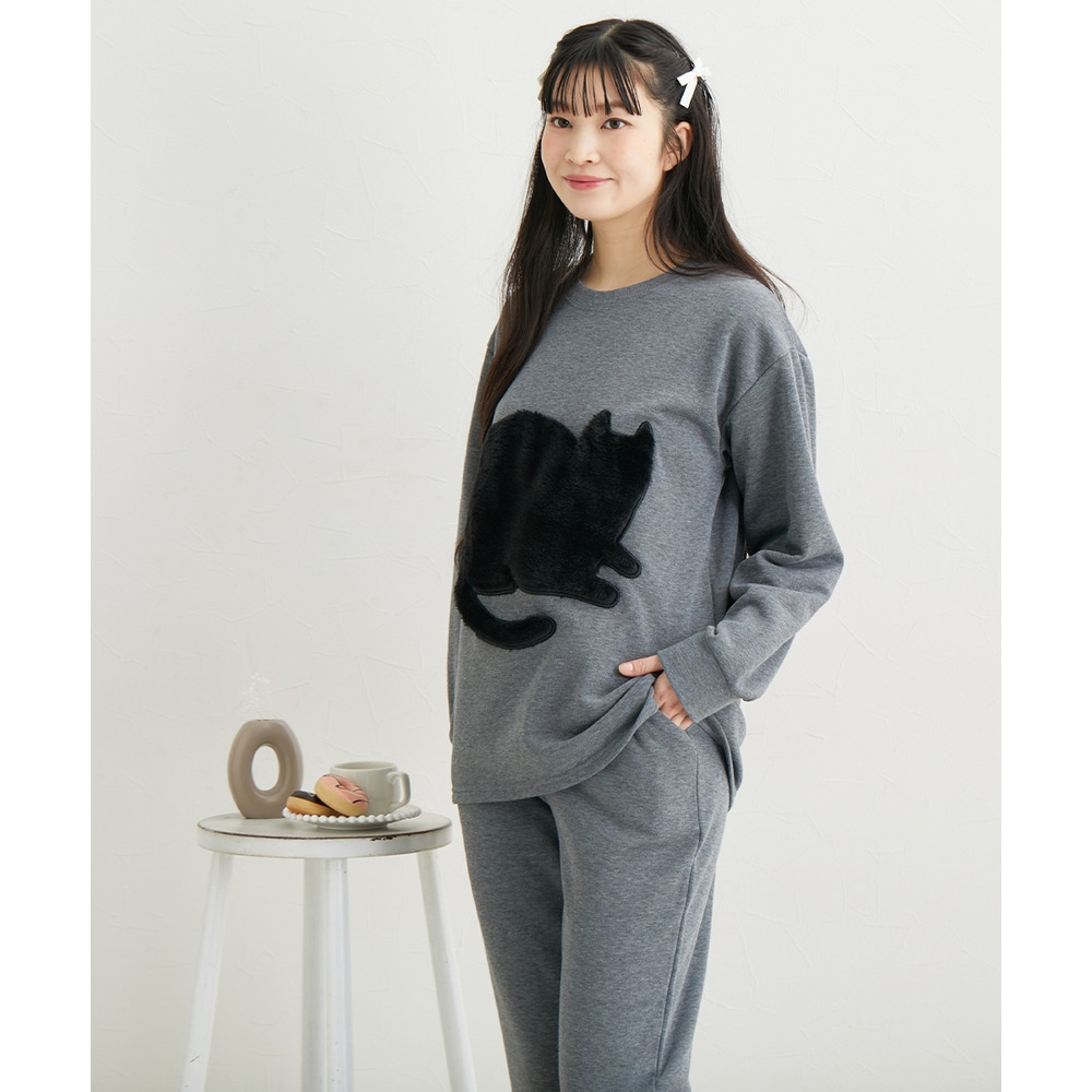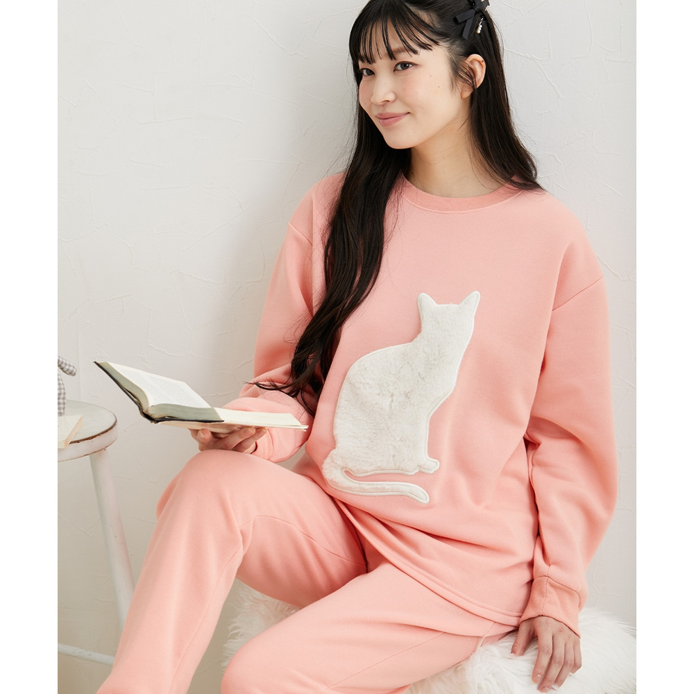 猫アップリケ付き裏起毛ルームウェア上下セット